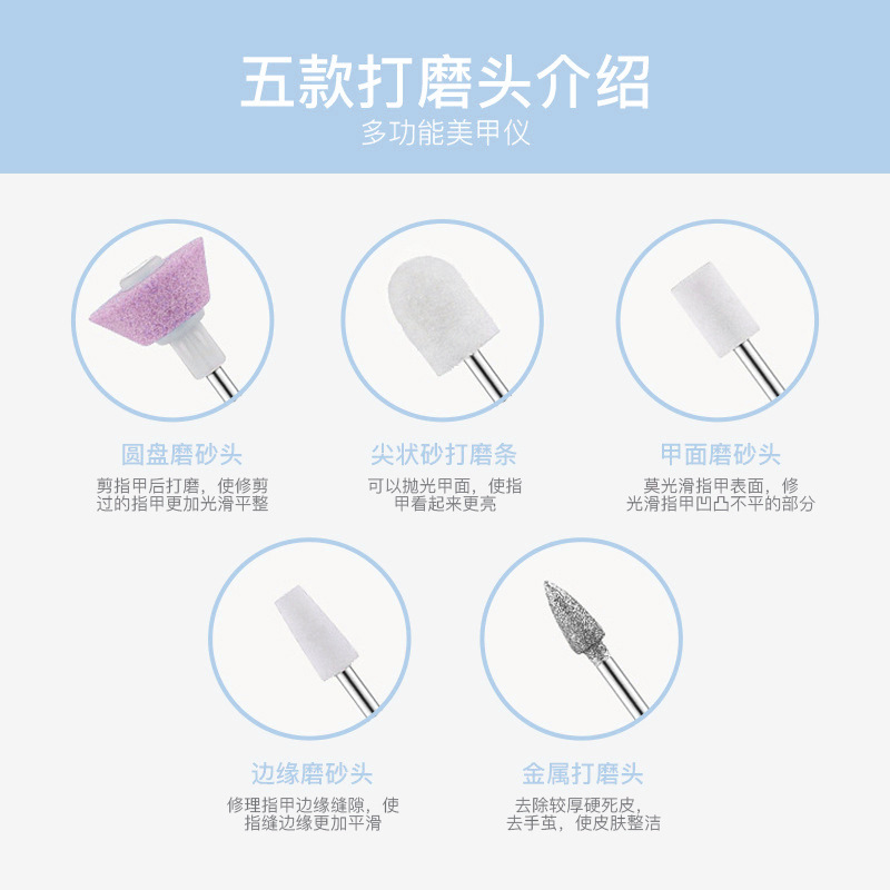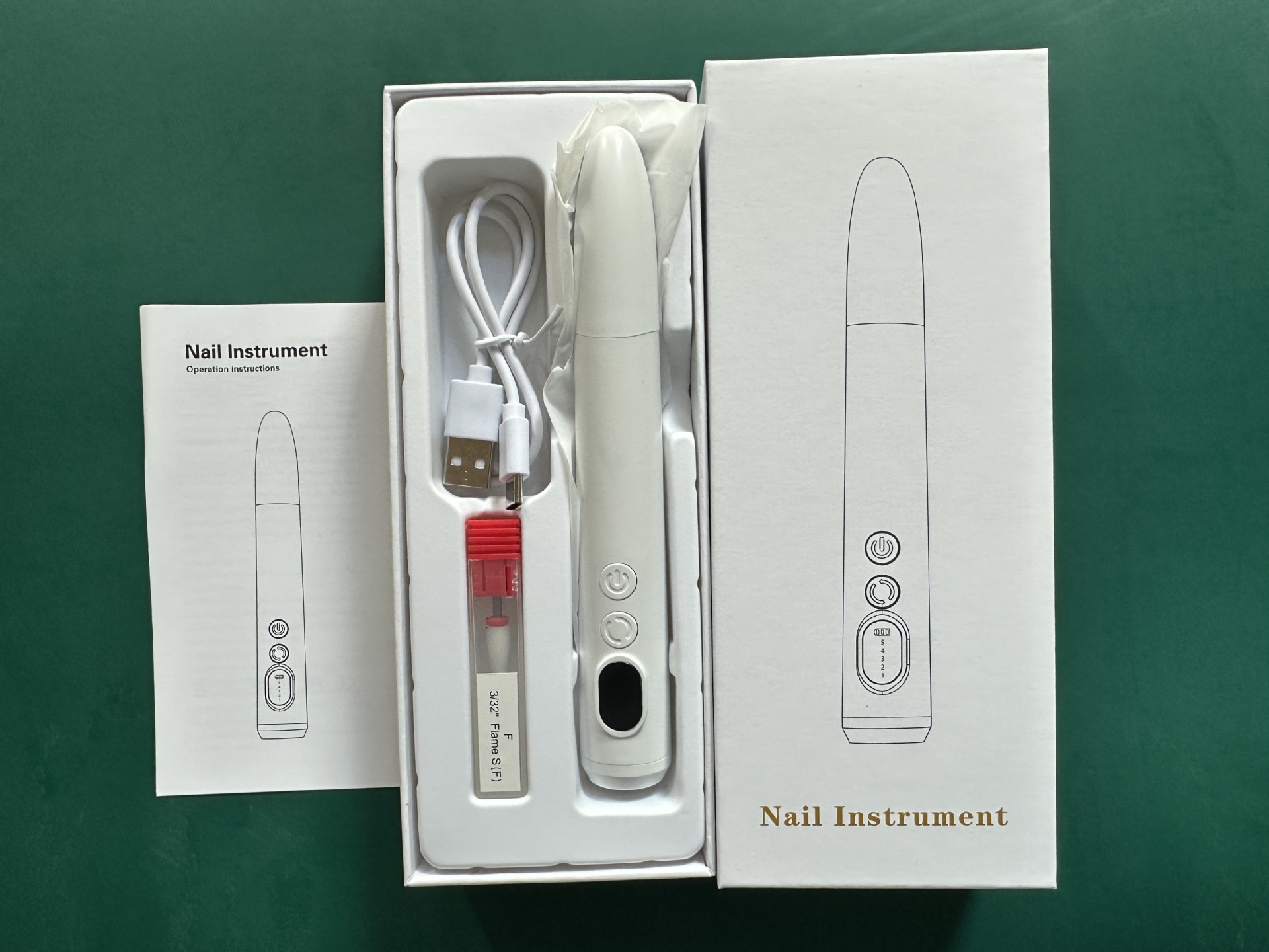 1. Основная часть ручки для дизайна ногтей 2. 6 шлифовальных головок 3. Кабель для передачи данных 4. Инструкции 5. Упаковочная коробка