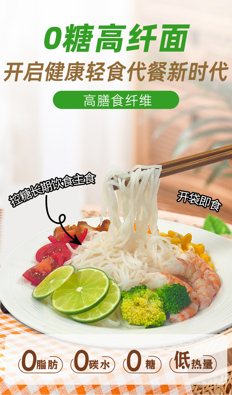 Конжаковая лапша для контроля сахара, 0 сахара, с высоким содержанием клетчатки, основное средство питания для диабетиков, 0 жира, готовая к употреблению, легкая закуска, OEM