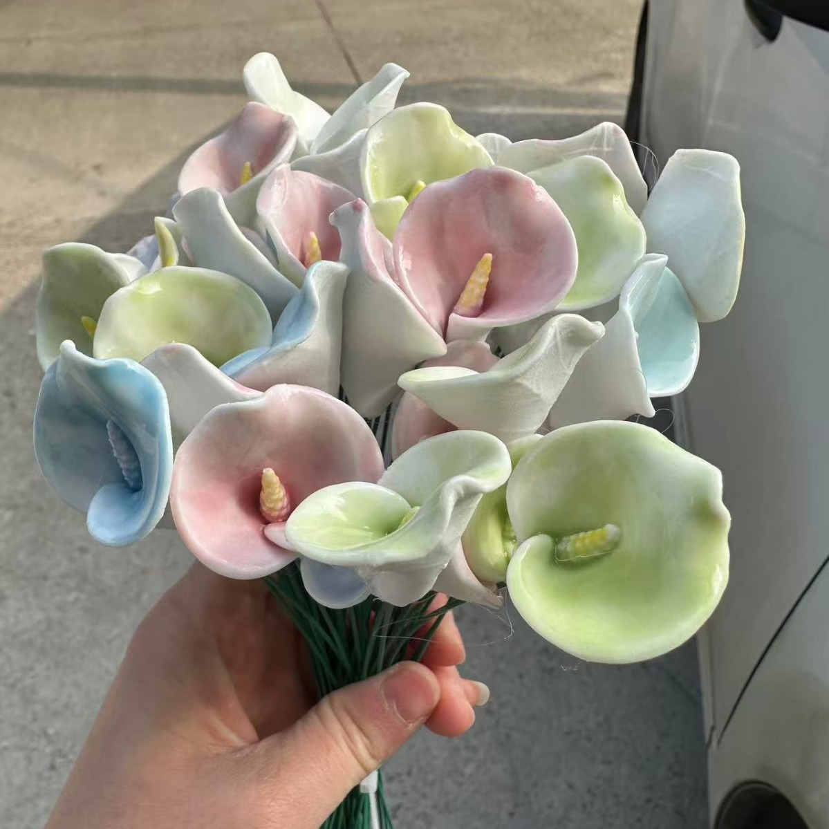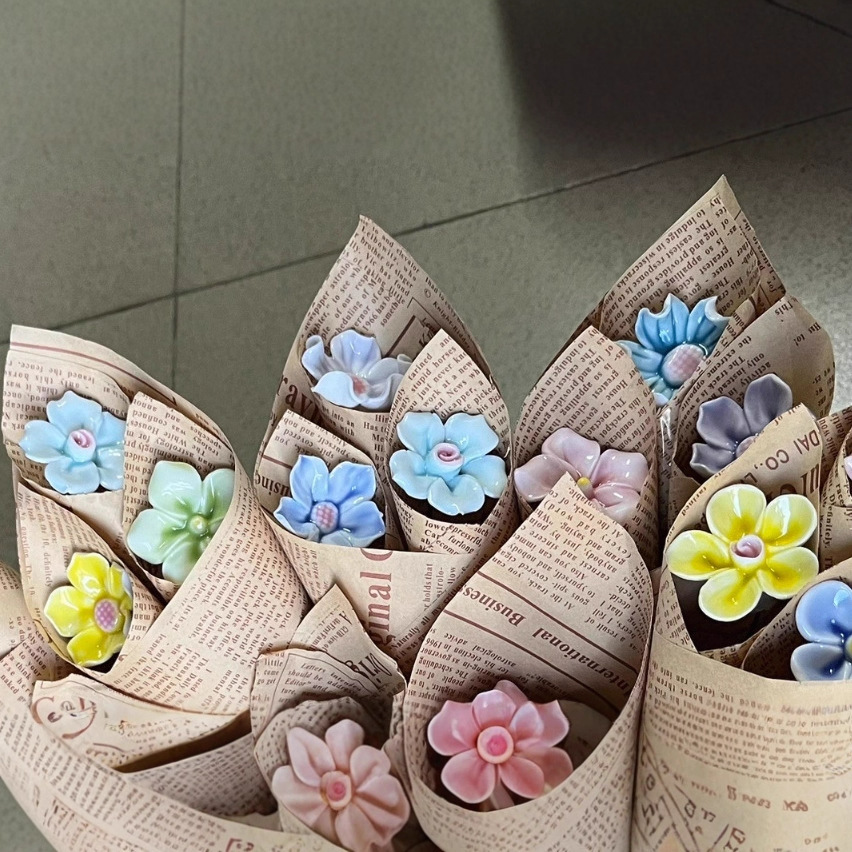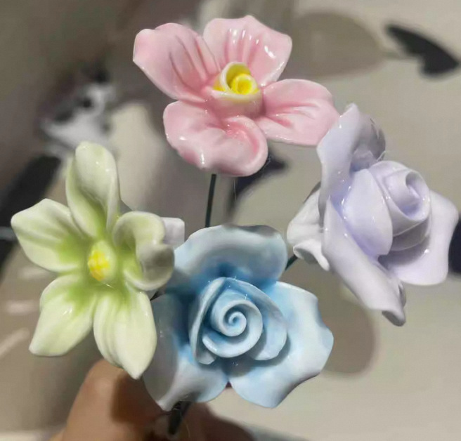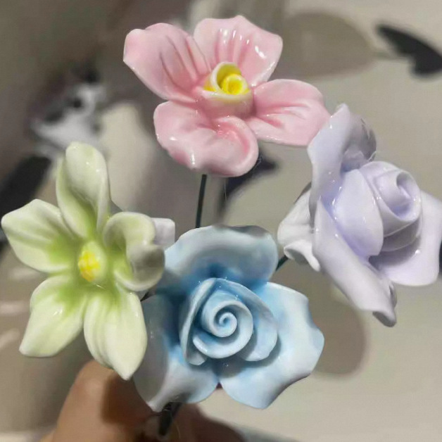 Керамический цветок из Цзиндэчжэня с ножкой, высокотемпературный керамический цветок для уличных киосков и ночных рынков, искусственный цветок для креативных подарков и культурно-креативных товаров.