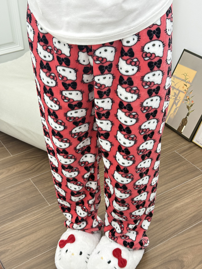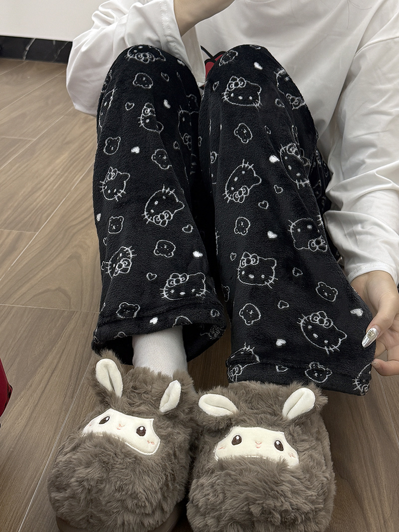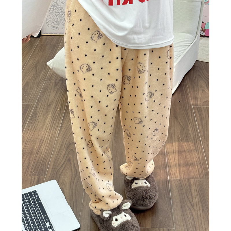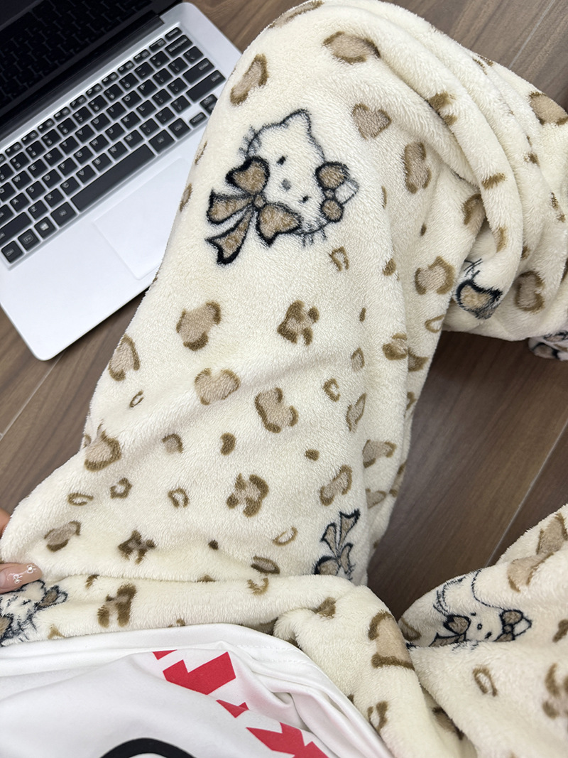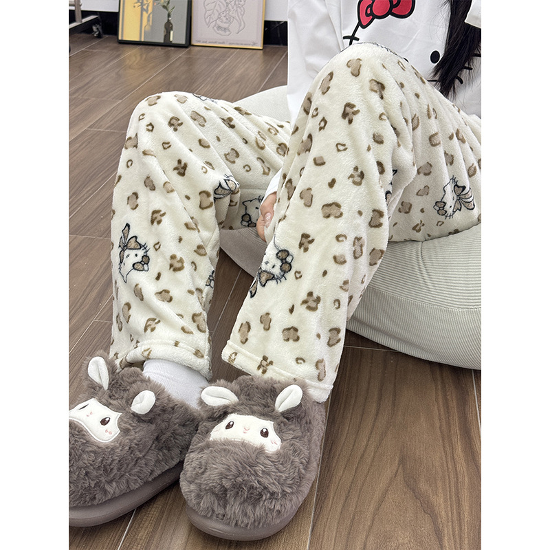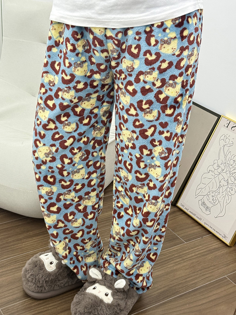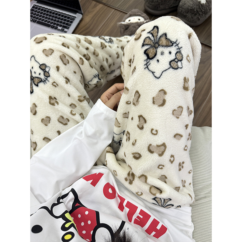 Леопардовый принт KTcat фланелевые пижамы женские осень-зима новый коралловый бархат утолщение тепло повседневные домашние брюки носить снаружи