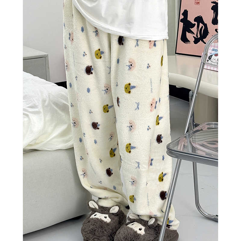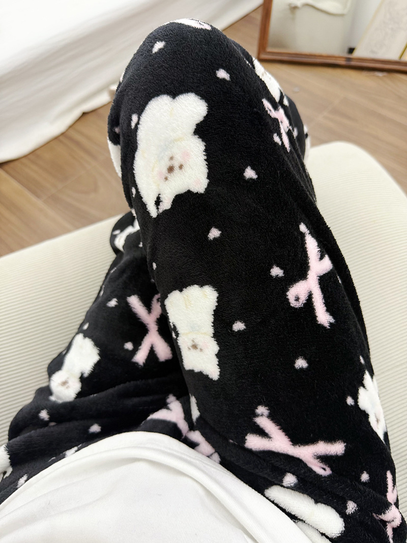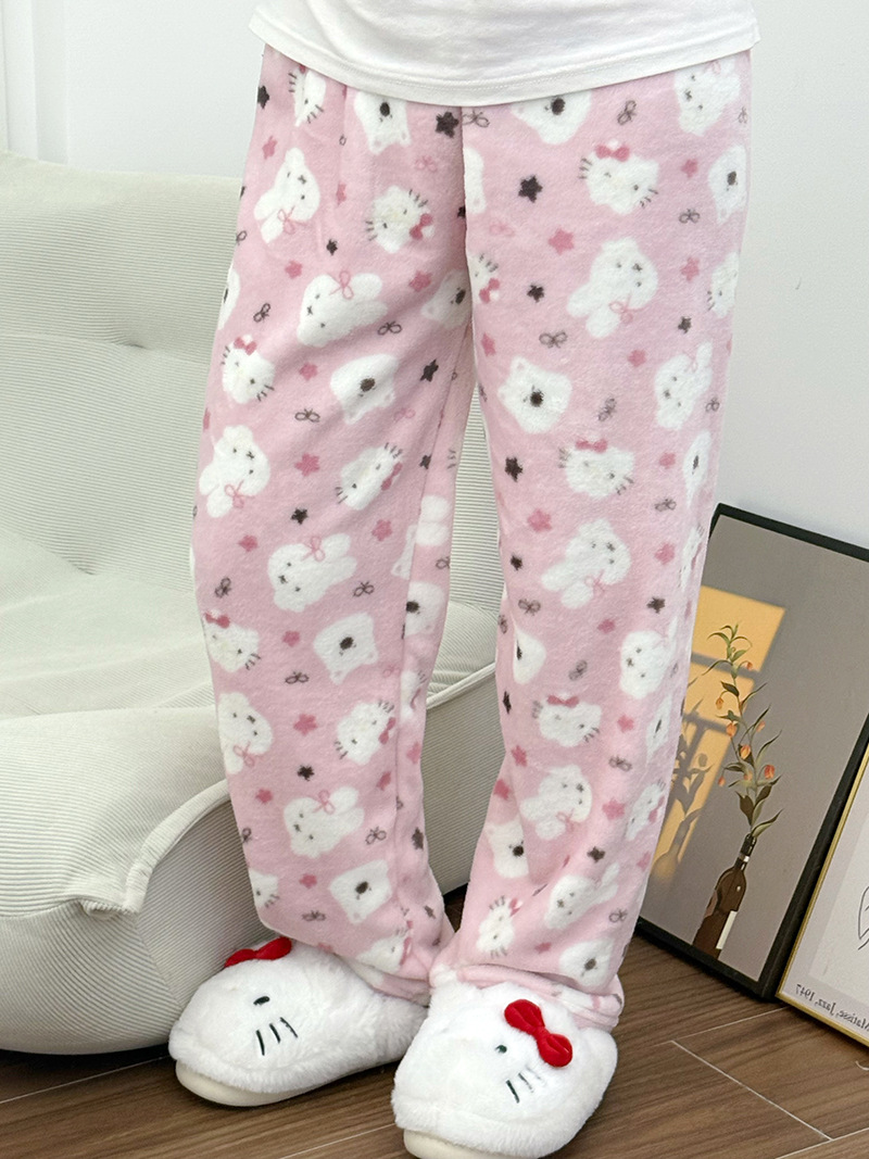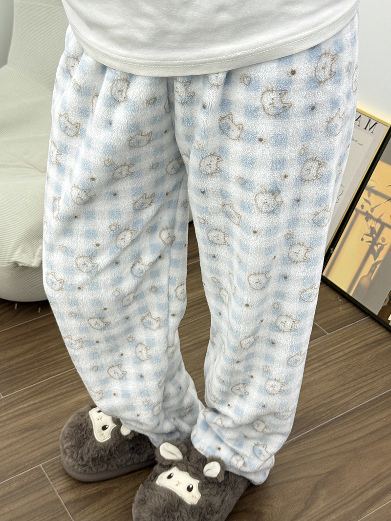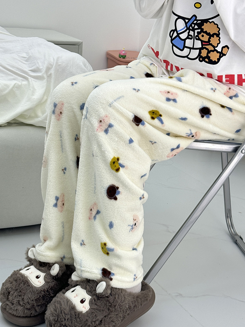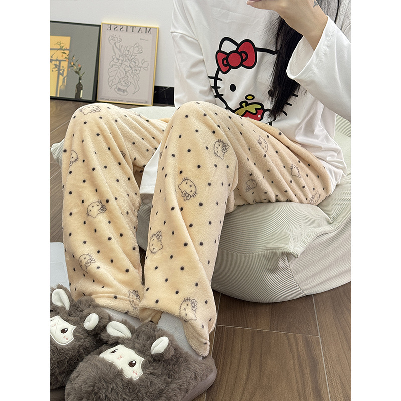 Леопардовый принт KTcat фланелевые пижамы женские осень-зима новый коралловый бархат утолщение тепло повседневные домашние брюки носить снаружи