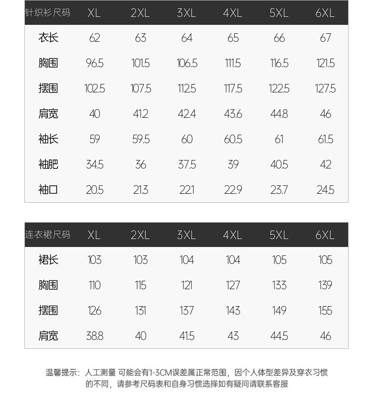 XL; 2XL; 3XL; 4XL; 5XL; 6XL