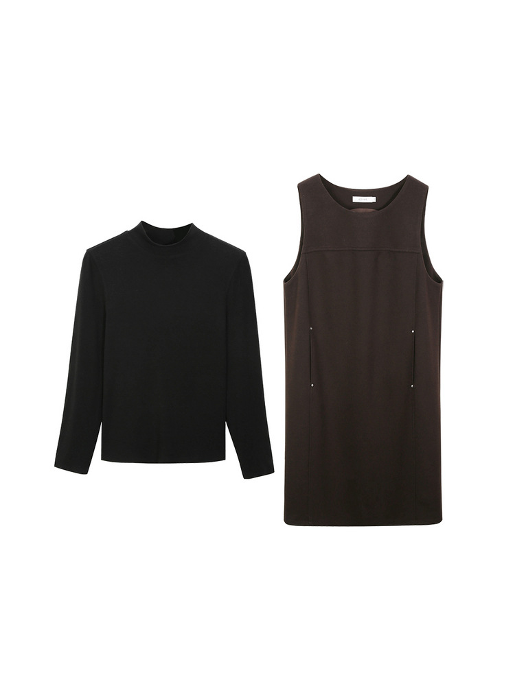 Черный [Вязаная рубашка QK0174]; Коричневый цвет [Вязаная рубашка QK0174]; Цвет овсянки [Вязаная рубашка QK0174]; Черное [Платье QJ5335]; Коричневый цвет [платье QJ5335]