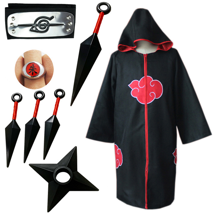 Плащ-органайзер Eagle со шляпой; Плащ-органайзер Eagle с шляпой + защита лба; Плащ-органайзер Eagle с шляпой + защита лба + кольцо; Плащ орла с капюшоном + защита лба + кольцо + маленький кунай; Плащ орла с капюшоном + защита лба + кольцо + большой кунай; Плащ орла с шапкой + комплект из пяти предметов; маленький кунай; Большой кунай без покраснений; Защита лоба ретелона; Большой белый кунай