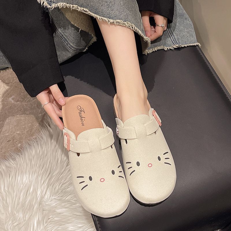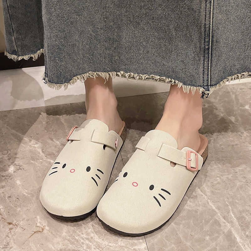 Женские туфли Birkenstock с милым котом, лето 2024, новые сандалии Baotou на толстой подошве и тапочки для верхней одежды, полутапочки