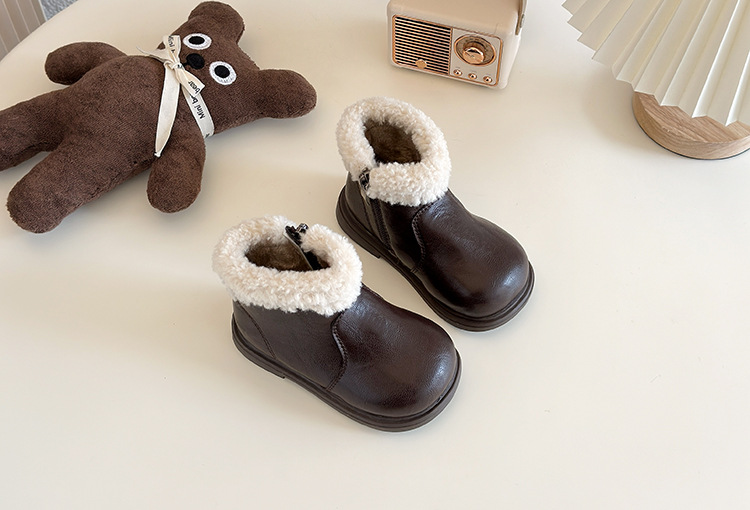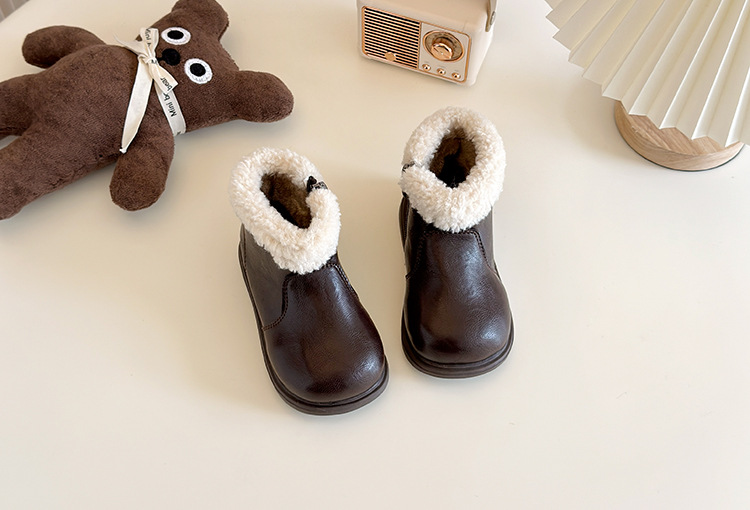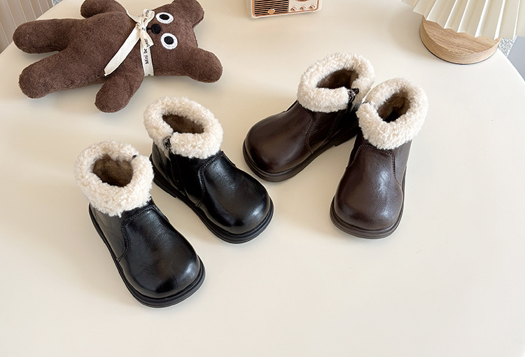 Ins детские ботинки в британском стиле Martin 2024 зимние новые корейские модные сапоги для девочек с толстой подошвы с бархатом хлопковые сапоги