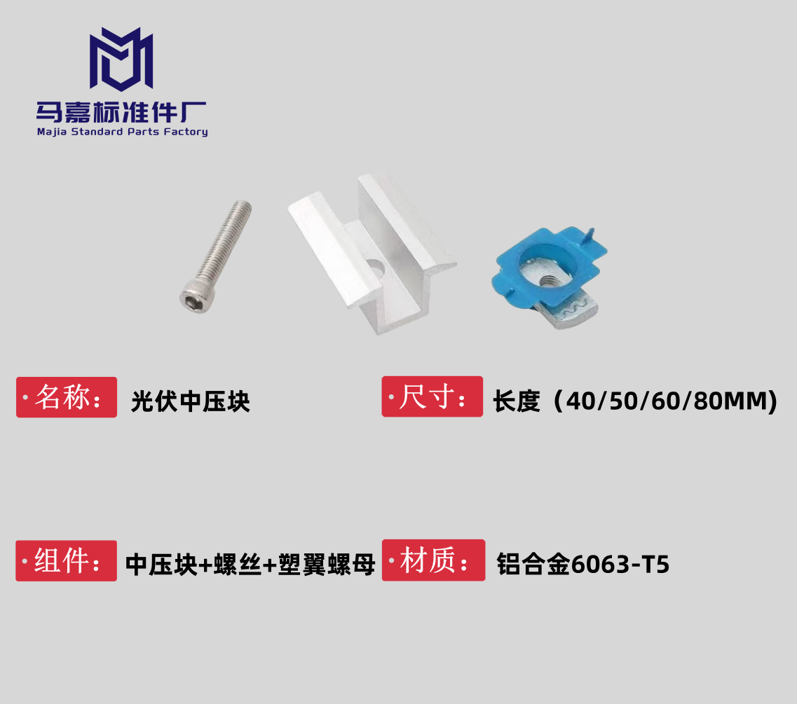 Фотоэлектрические аксессуары Алюминиевый сплав Материал Комбинация боковых компрессионных соединений среднего давления на стороне солнечной панели Фотоэлектрические боковые давления