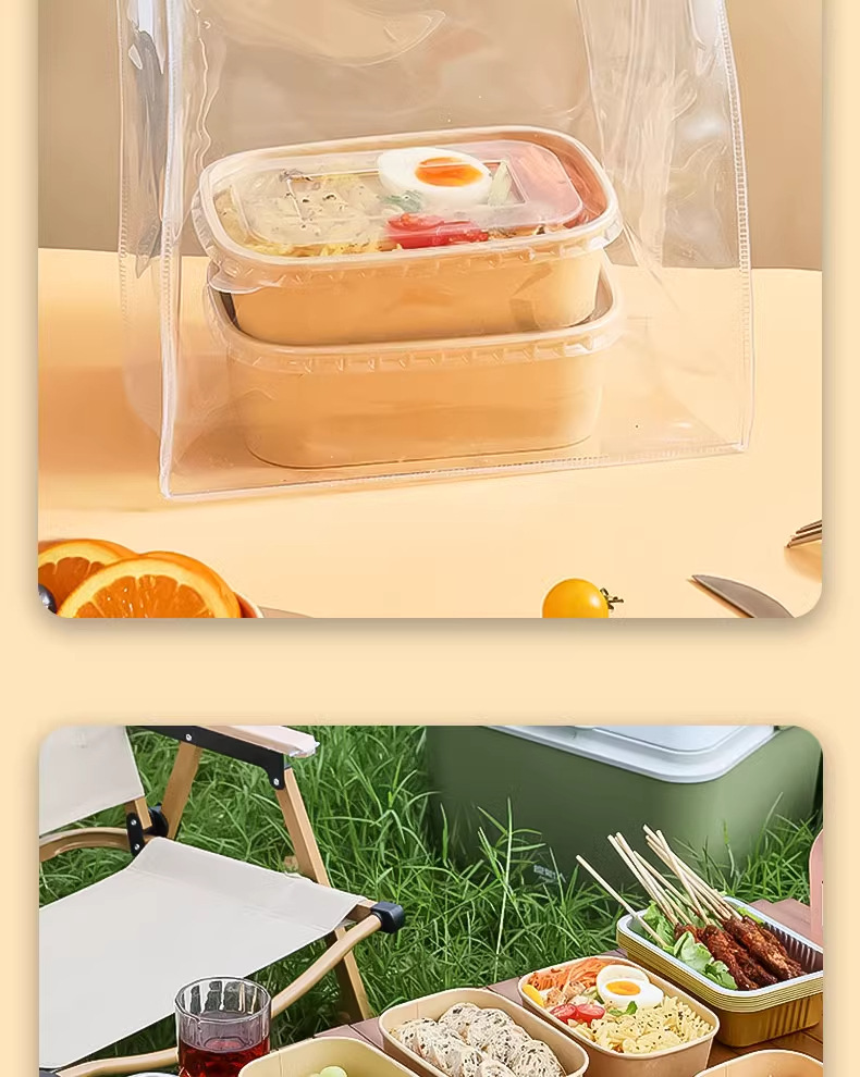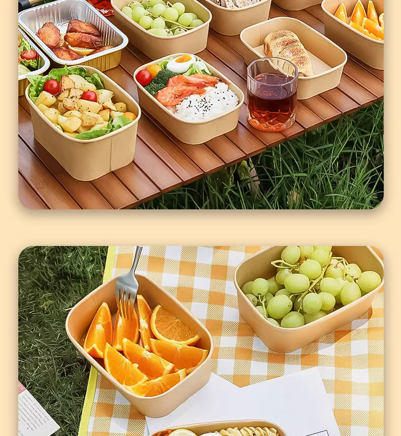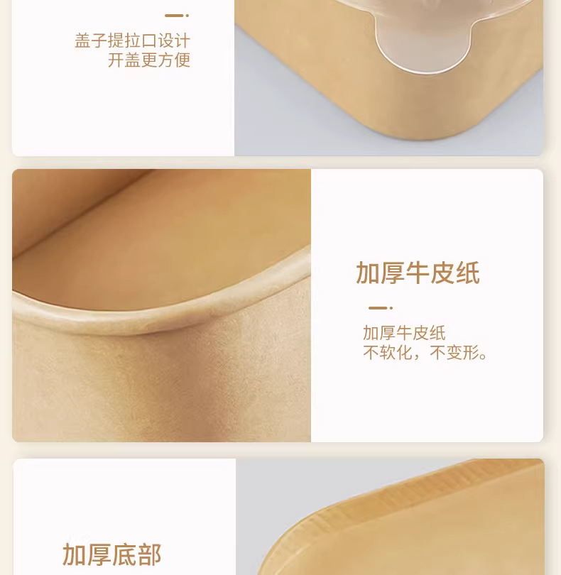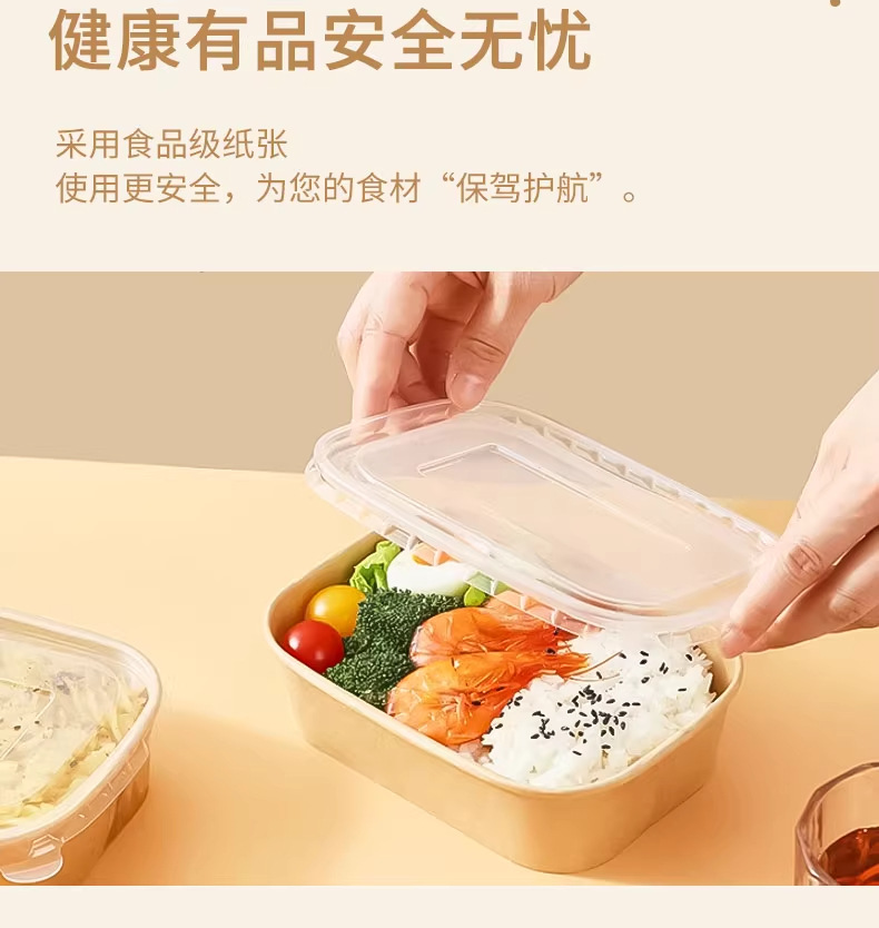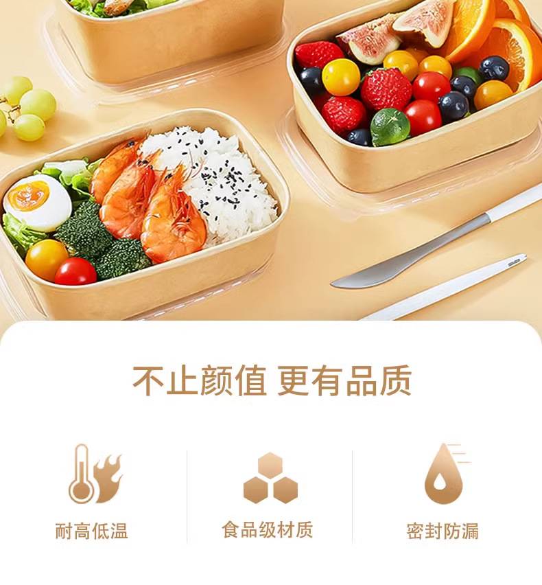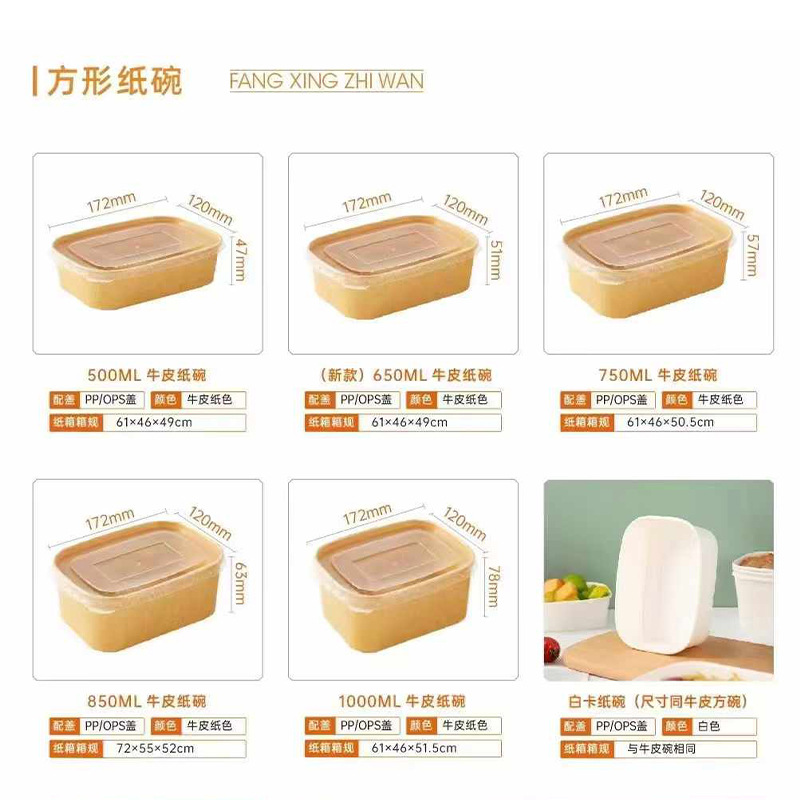 Оптовая продажа от фабрики Xinglu: полный комплект одноразовых утолщенных квадратных бумажных мисок из крафт-бумаги с крышками для коммерческого использования.