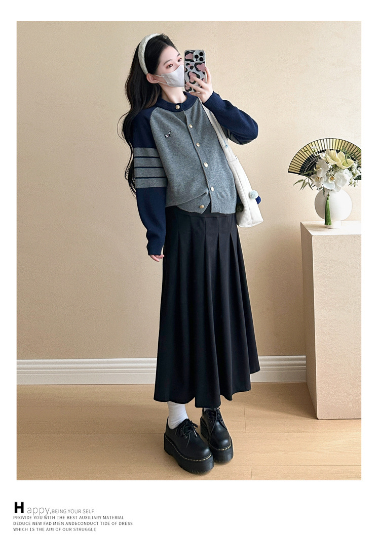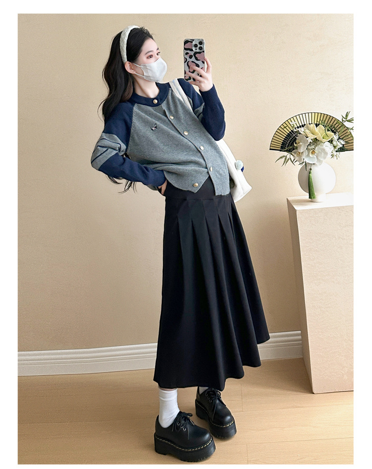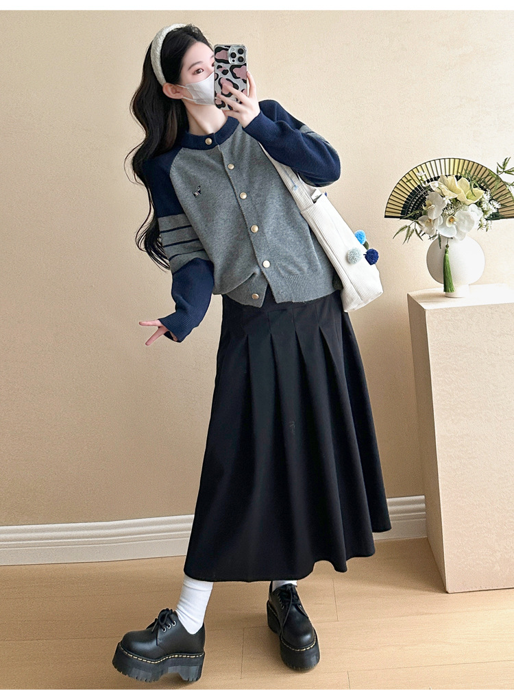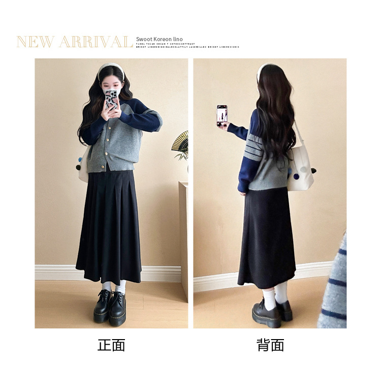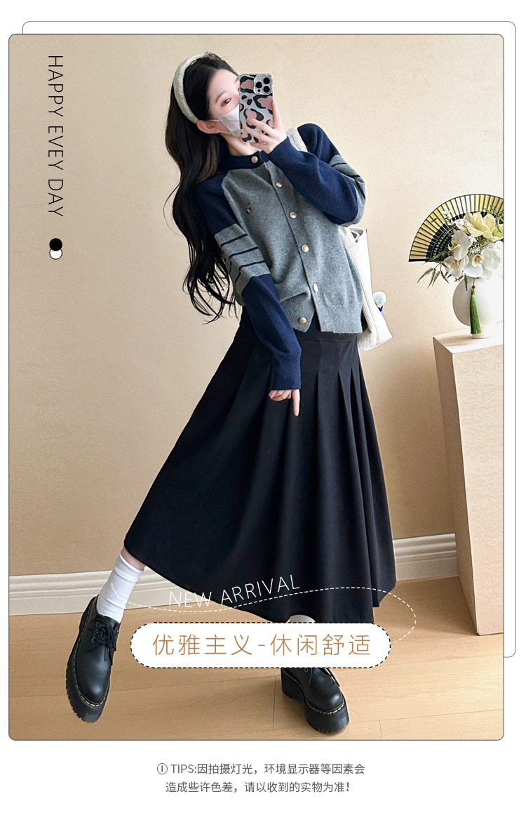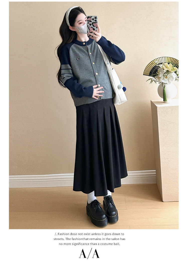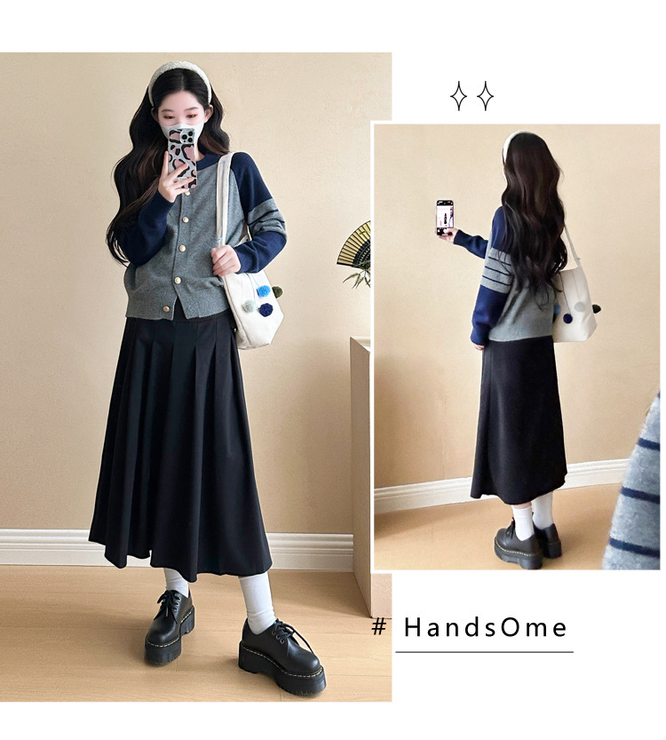 Вязаные топы в стиле преппи для беременных, короткие куртки, костюмы с плиссированной шерстяной юбкой.