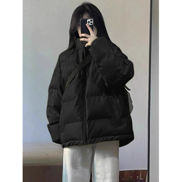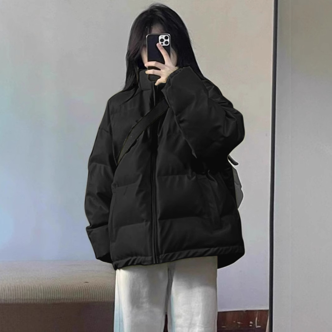 Женская чёрная хлопковая куртка в американском стиле, зима 2025, новая популярная стеганая тёплая короткая хлопковая куртка, утолщённая верхняя одежда.