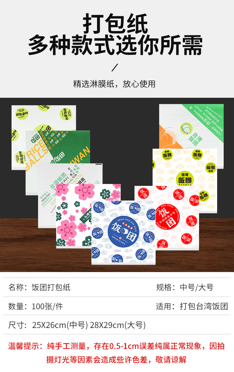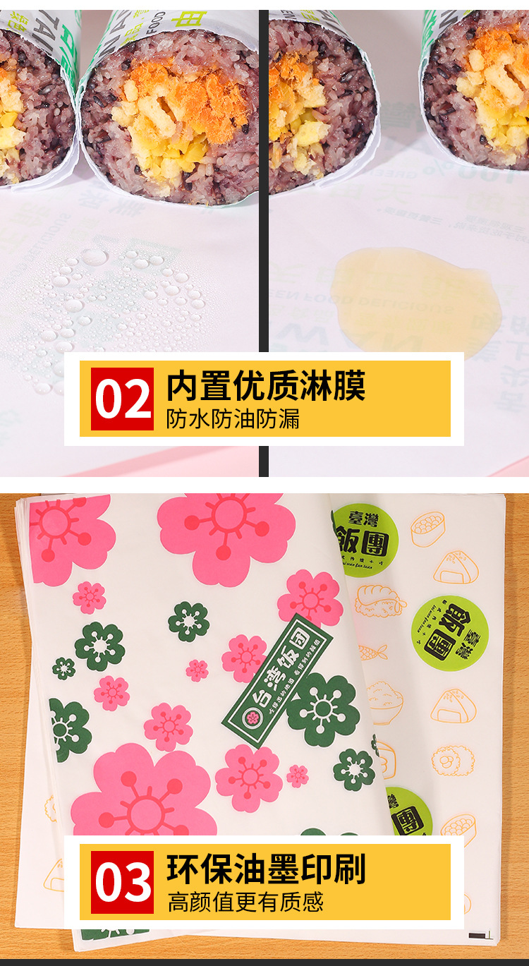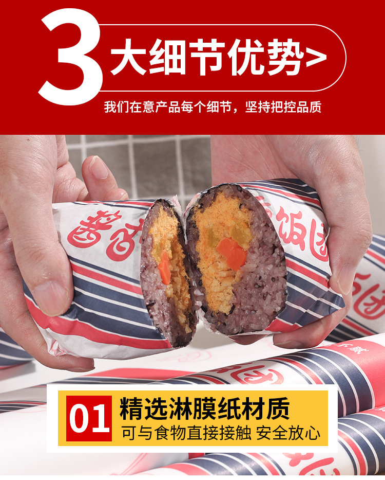 Тайваньская рисовая шариковая упаковочная бумага большая упаковочная бумага маслостойкая бумага для гамбургера пленка материал для рисовой капусты Коммерческие инструменты