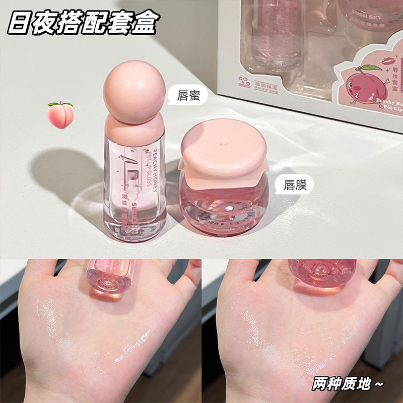 SUSU SKY персиковый персиковый горшок для макияжа губ. Коробка для макияжа. Увлажняющая и увлажняющая.