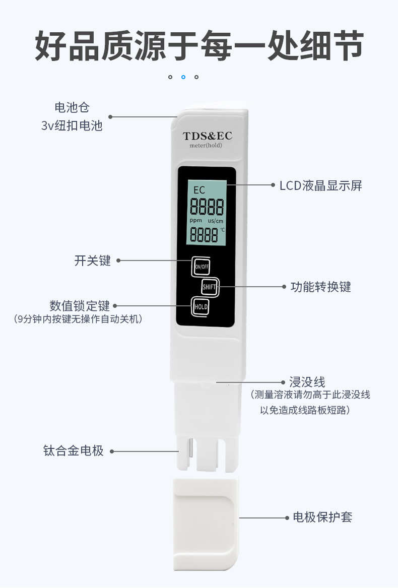 Обновленный [Трехв-одном тестер качества воды]; Обновленный [Трехв-одном тестер качества воды] с бумажным корпусом; Обновленный [Трехв-одном тестер качества воды] с кожаным футляром; Обновленный [Трехв-одном тестер качества воды] с пластиковым футляром; Резервная батарея; Водная ручка от черных точек + бумажная коробка; Обновленная модель с подсветкой [три-в-одном: тестер качества воды]; Обновленная модель с подсветкой [три-в-одном: тестер качества воды] + бумажный чехол; Обновленная модель с подсветкой [три-в-одном: тестер качества воды] + кожаный чехол; Обновленная модель с подсветкой [три-в-одном: тестер качества воды] + пластиковый кейс