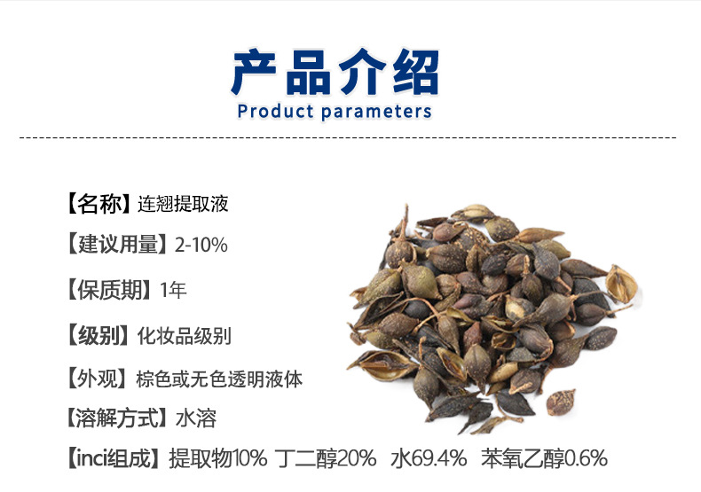天然植物成分化妆品护肤原料无色连翘提取液萃取液连翘提取物1kg