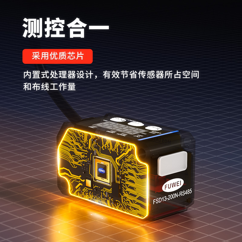 是集测控一体的数显型激光位移传感器测量范围25-1000mm多种量程可选择便捷操作面板配置OLED数字显示具有模拟量与RS485通讯(支持ModBus协议)通信多种输出线性精度高达±0.1% F.S分辨率最高达2.5μm;温度漂移控制在±0.02%F.S./°C