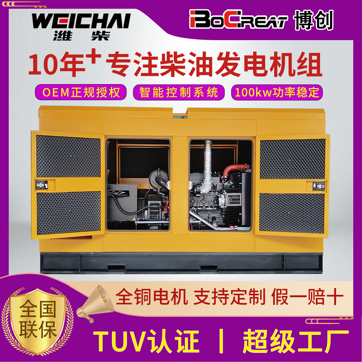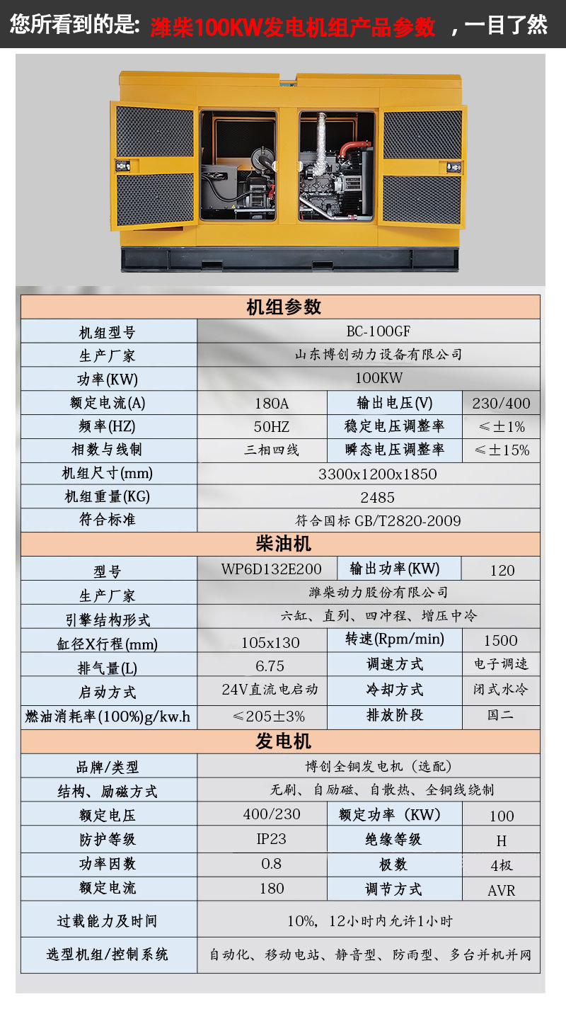 Дизель-генераторная установка Weichai 100 кВт в бесшумном кожухе, низкий уровень шума, низкий расход топлива, высокая мощность, мощный дизельный генератор