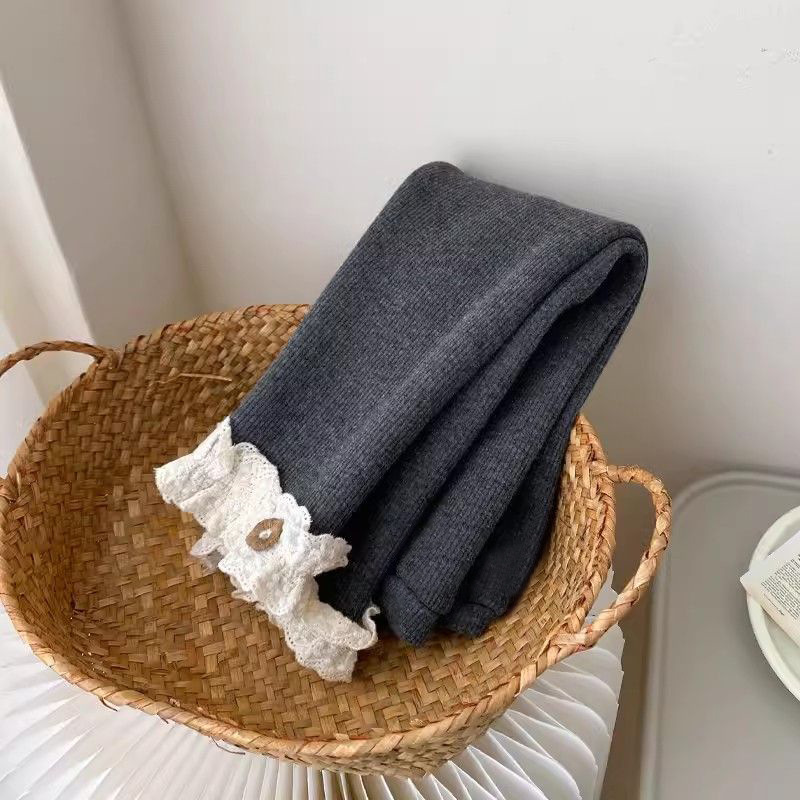 Девушки плюс бархатные леггинсы Иностранные кружевные стройные брюки