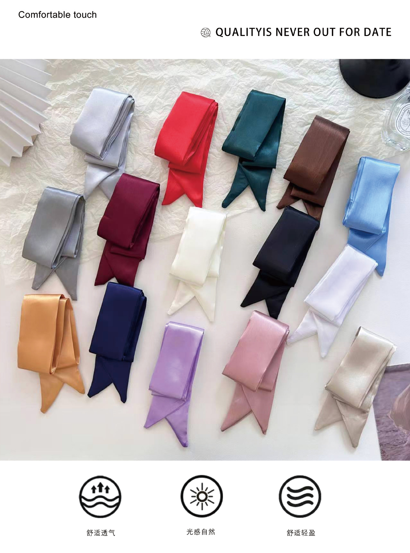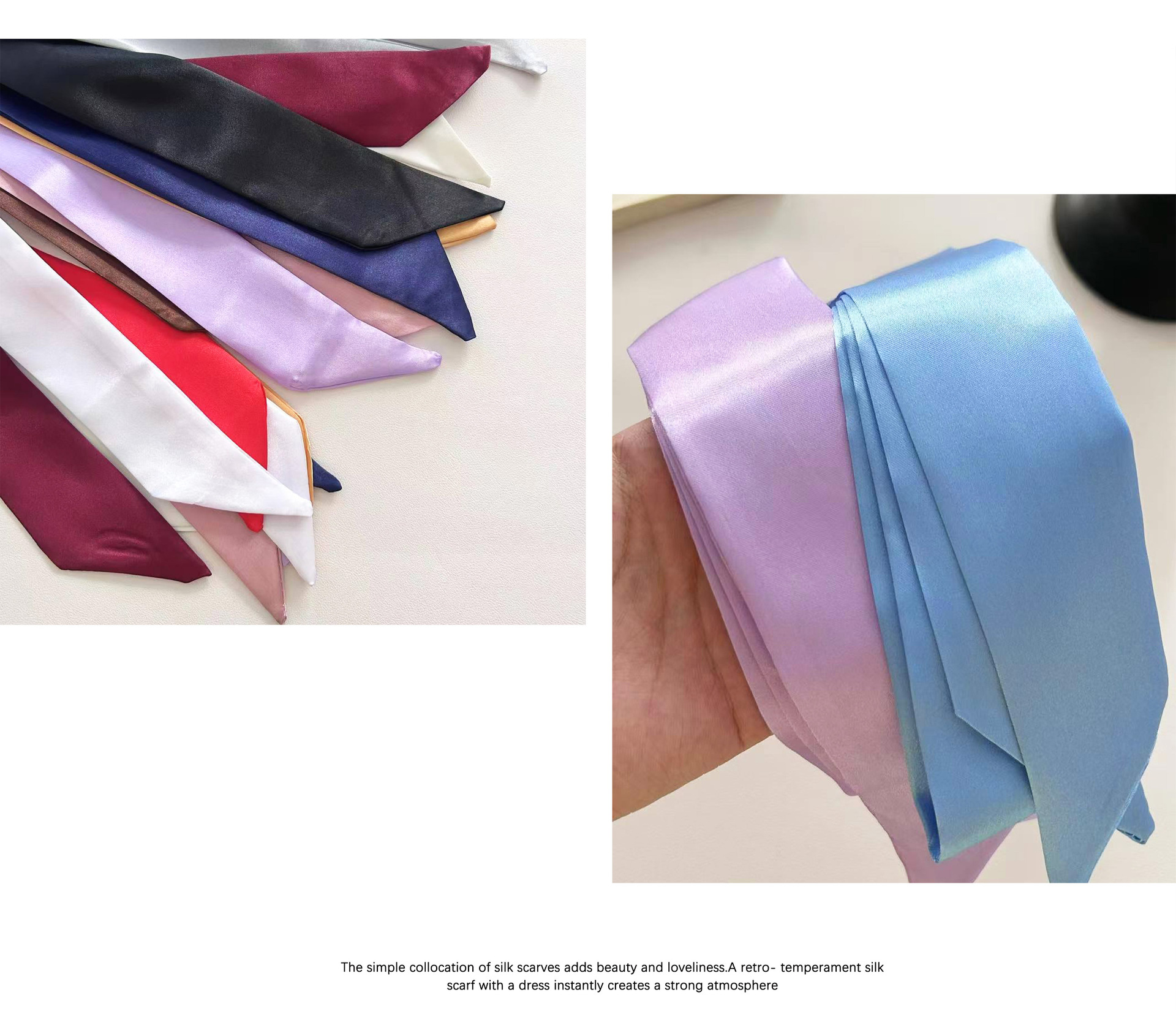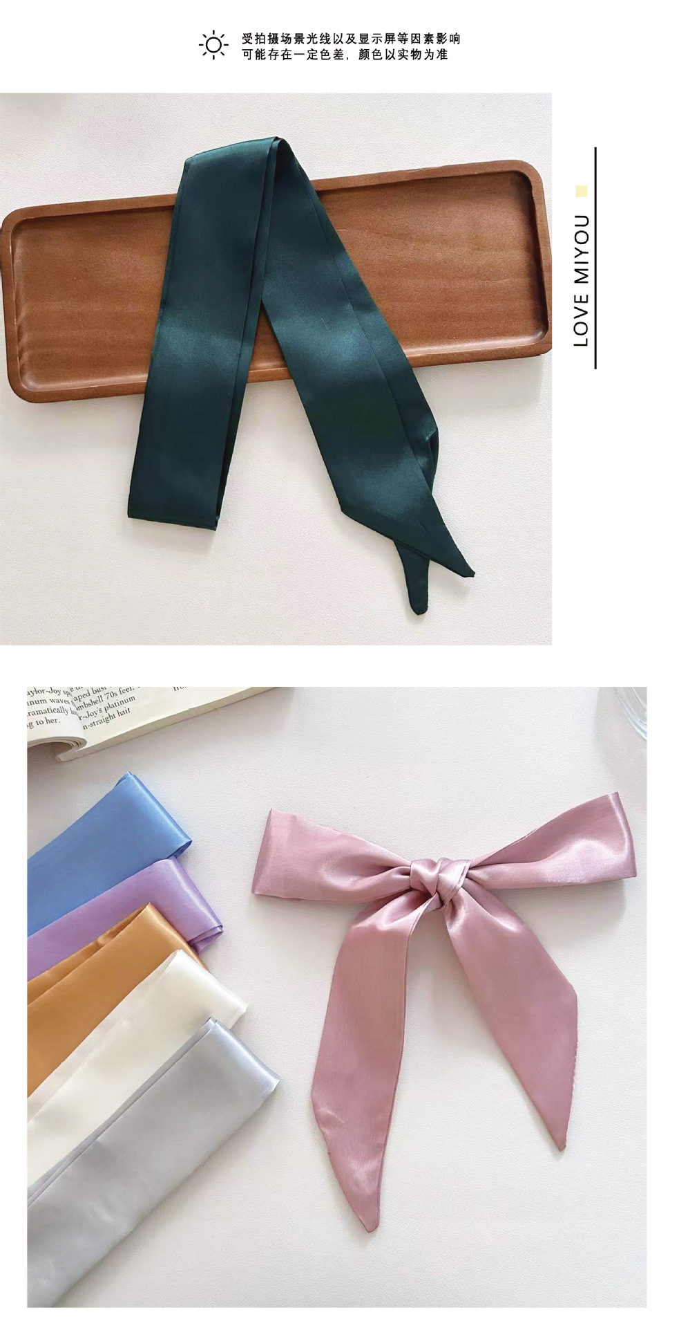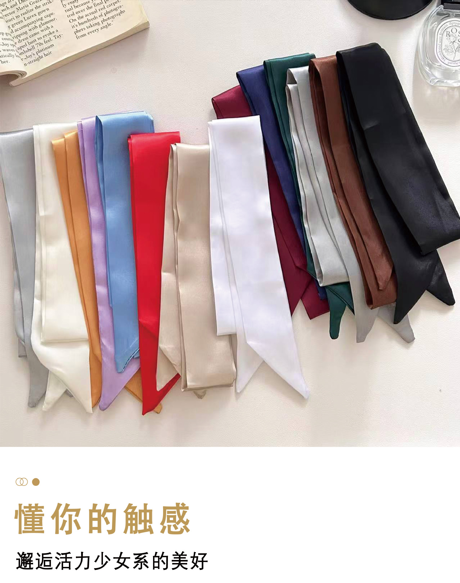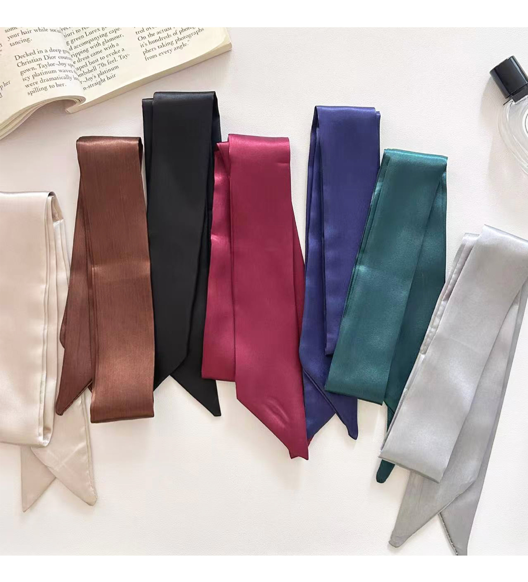 Корейский атласный чистый шелковый шарф тонкая узкая длинная лента