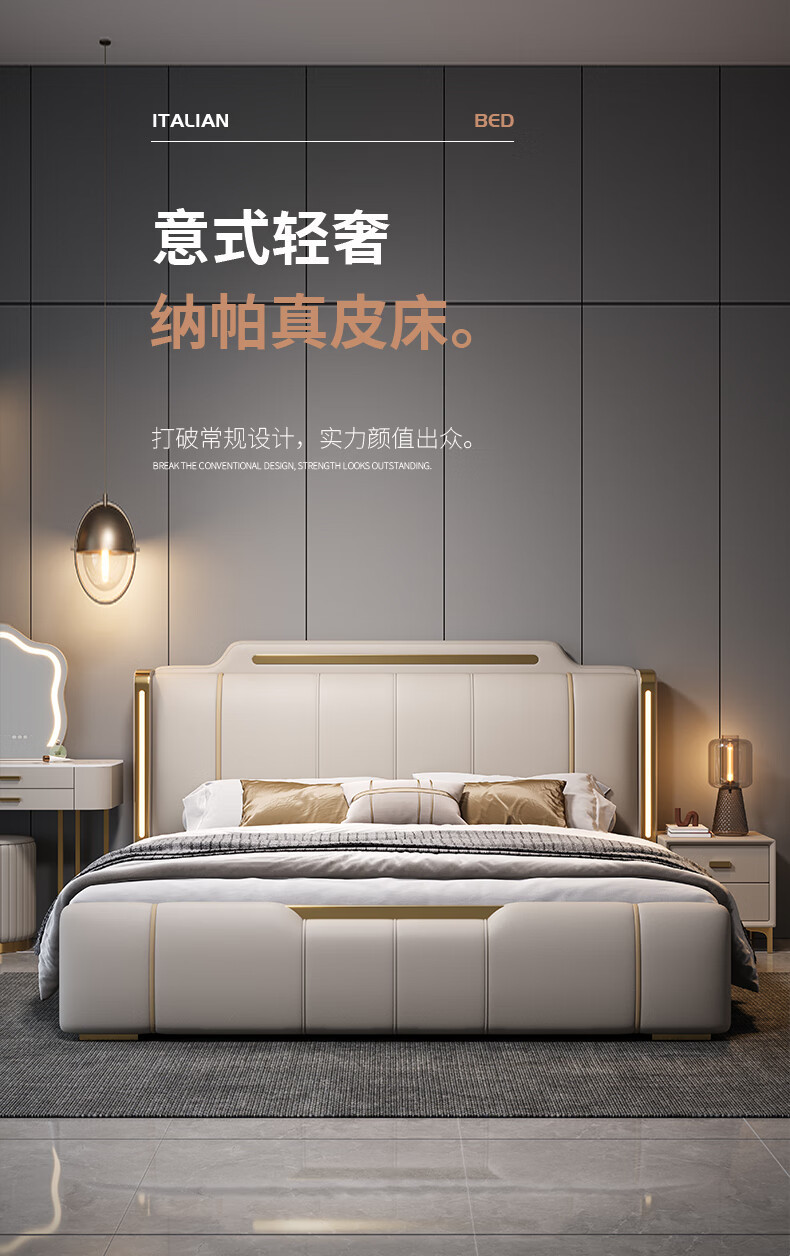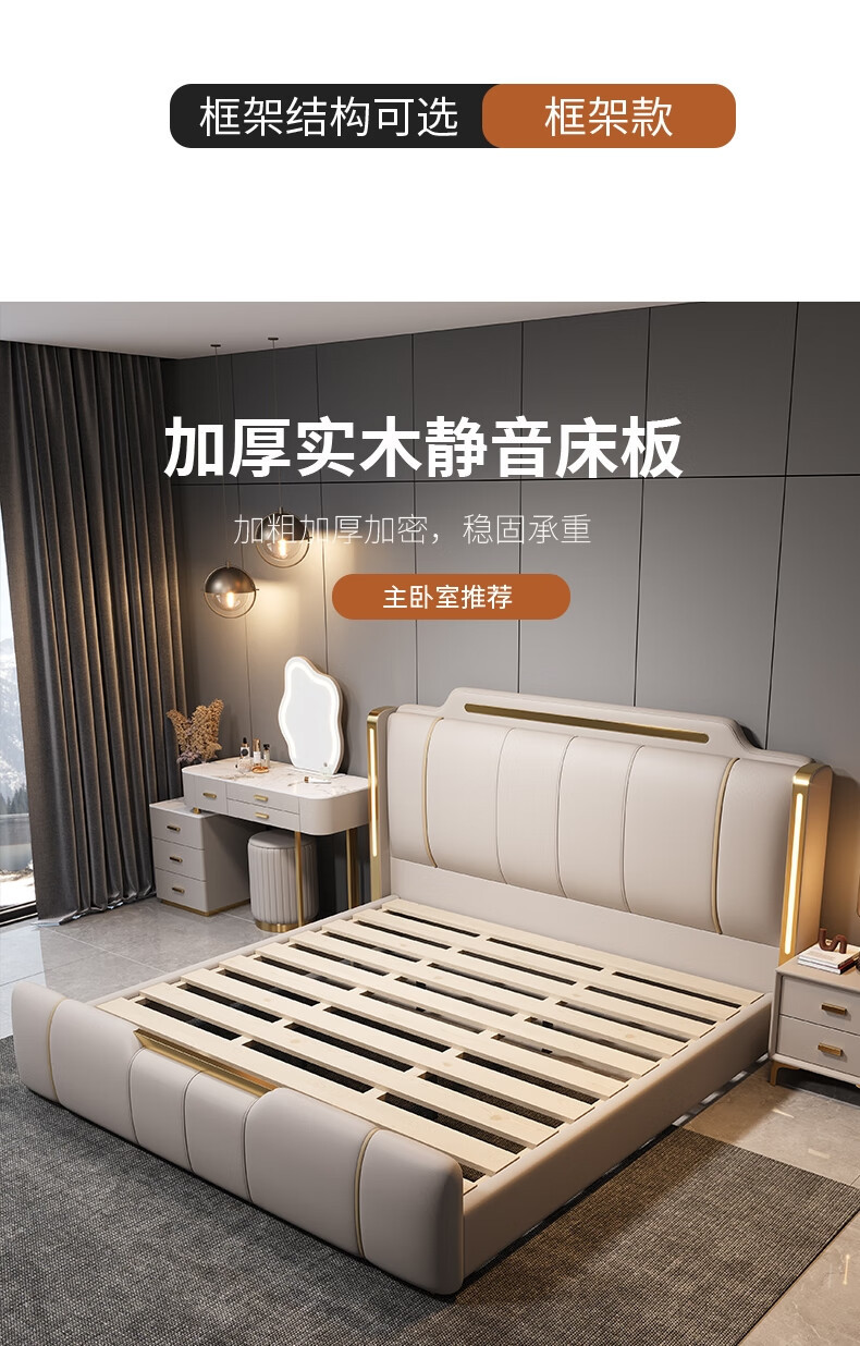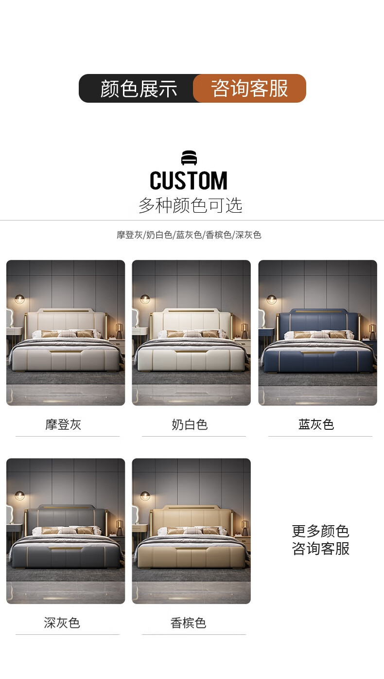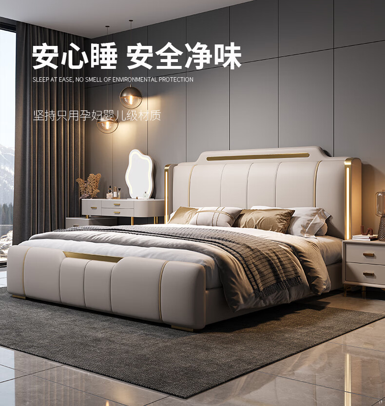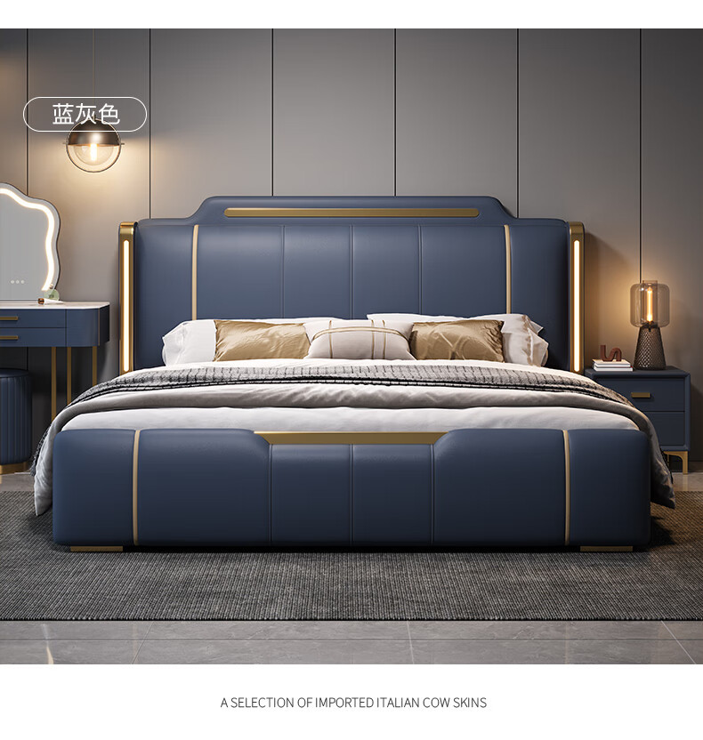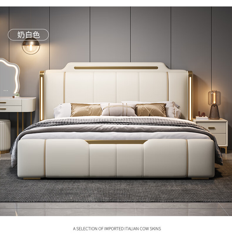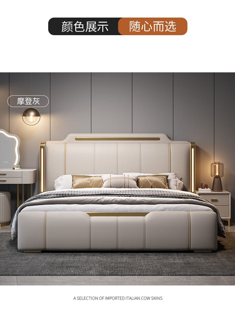Новая роскошная кожаная кровать в итальянском стиле для главной спальни, простая современная кожаная кровать, элегантная высококачественная двуспальная кровать с мягкой обивкой, свадебная кровать.