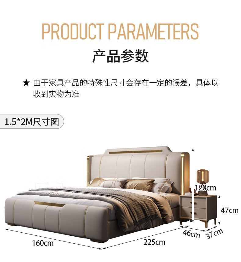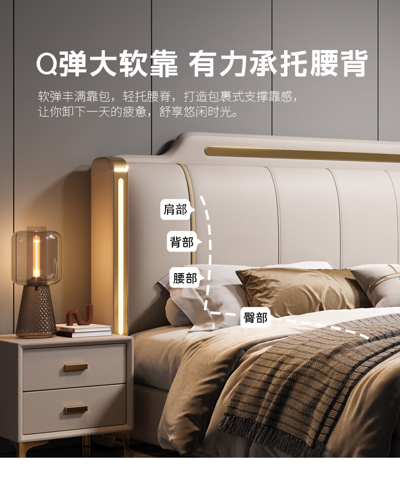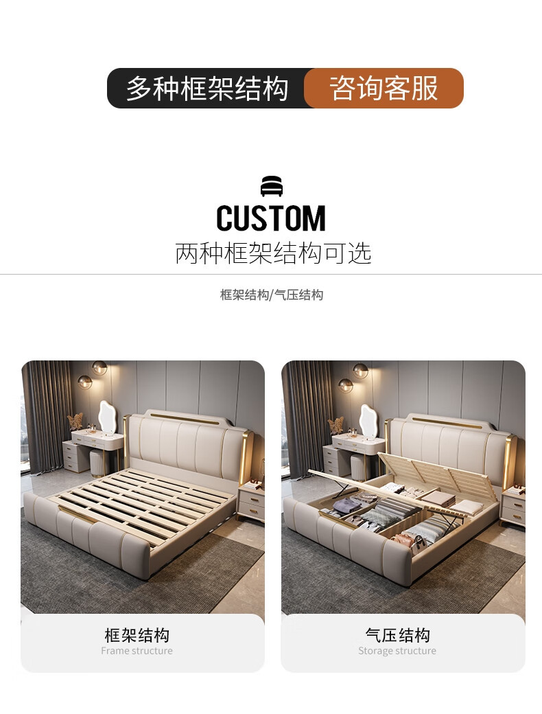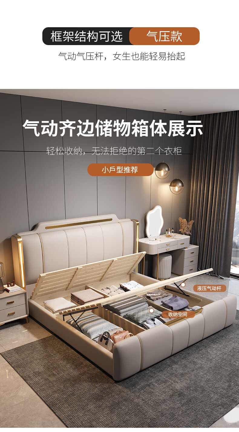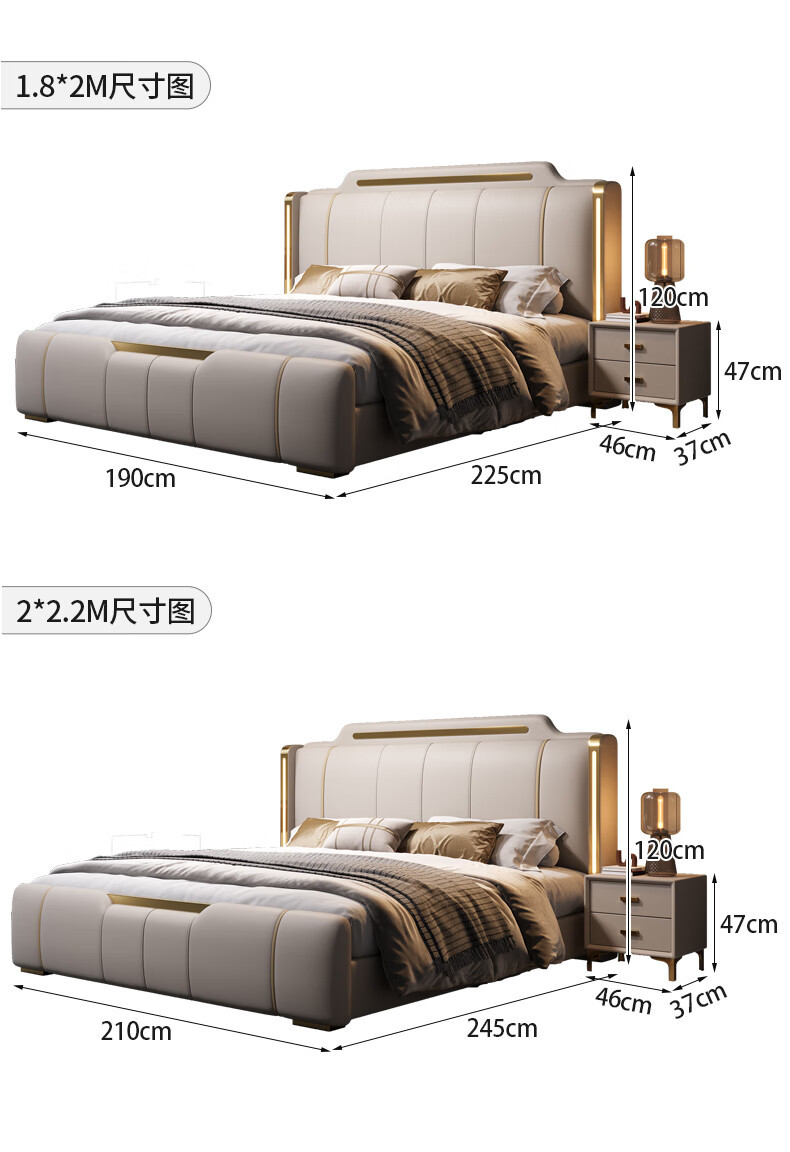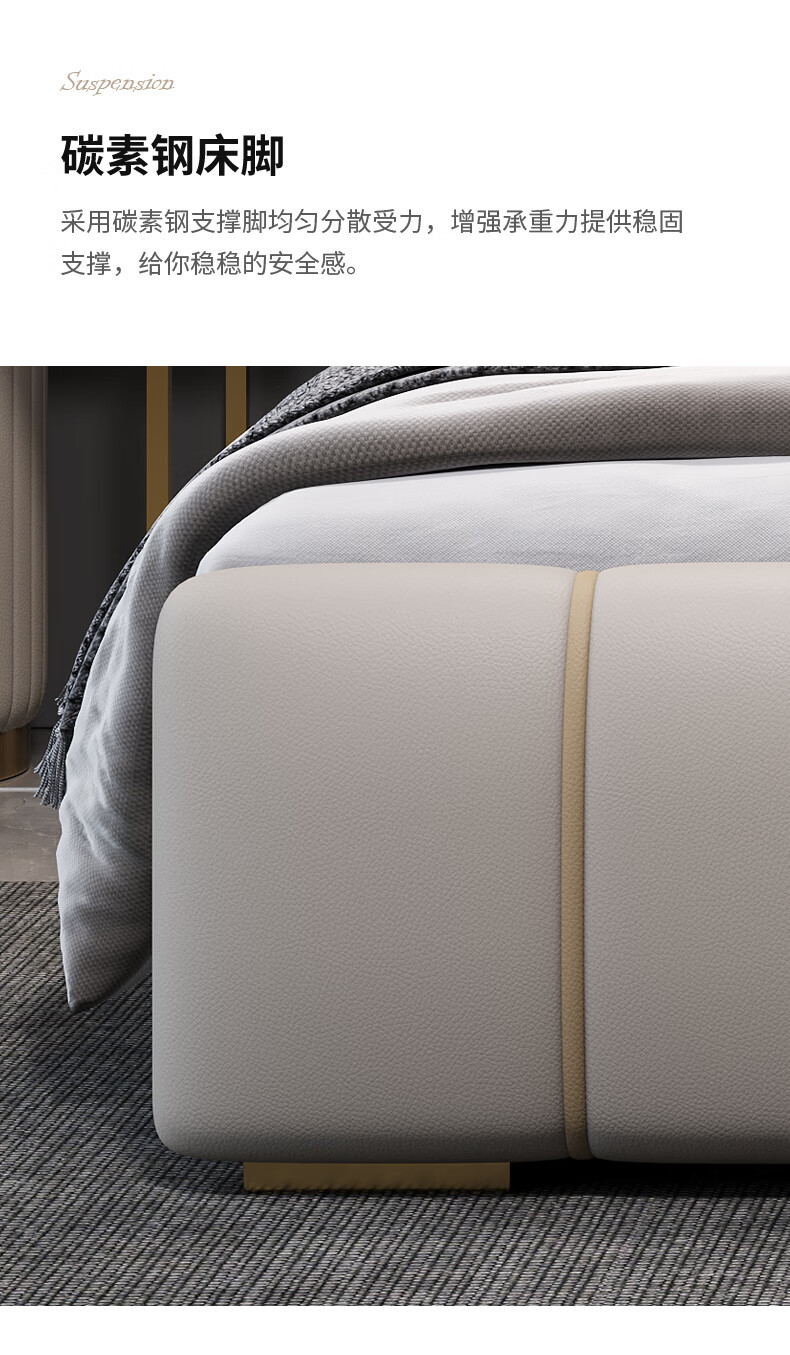 Новая роскошная кожаная кровать в итальянском стиле для главной спальни, простая современная кожаная кровать, элегантная высококачественная двуспальная кровать с мягкой обивкой, свадебная кровать.