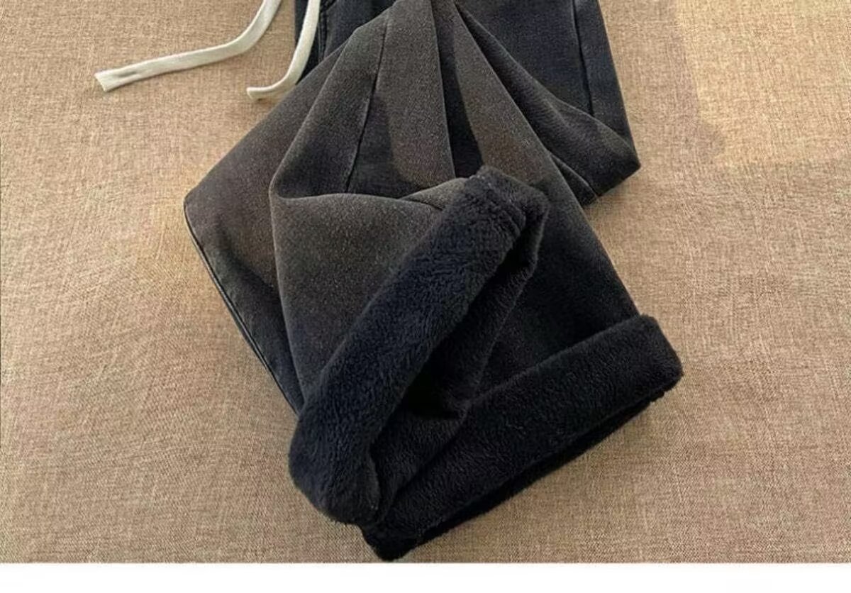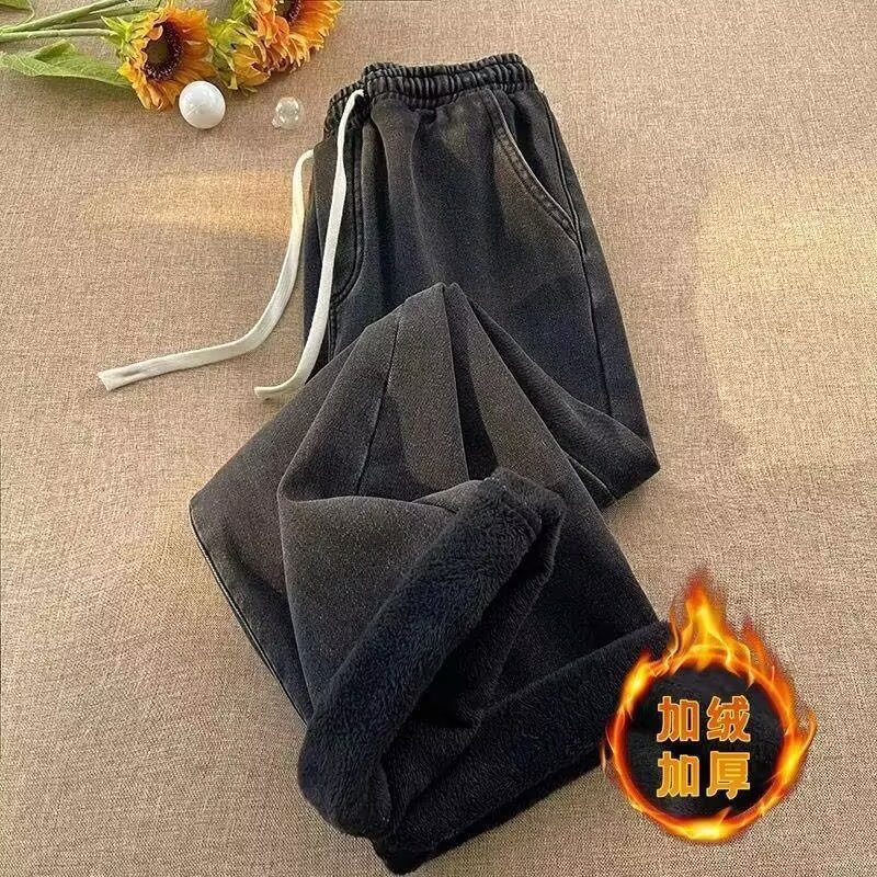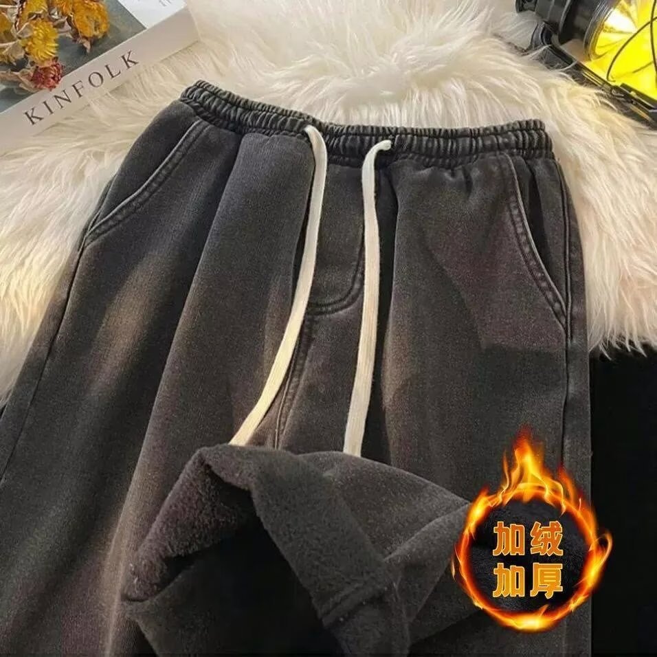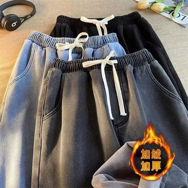 Плюшевые толстые джинсы мужской сезон эласткая талия, прямые ноги, маленькие свободные осенние и зимние студенты теплые брюки