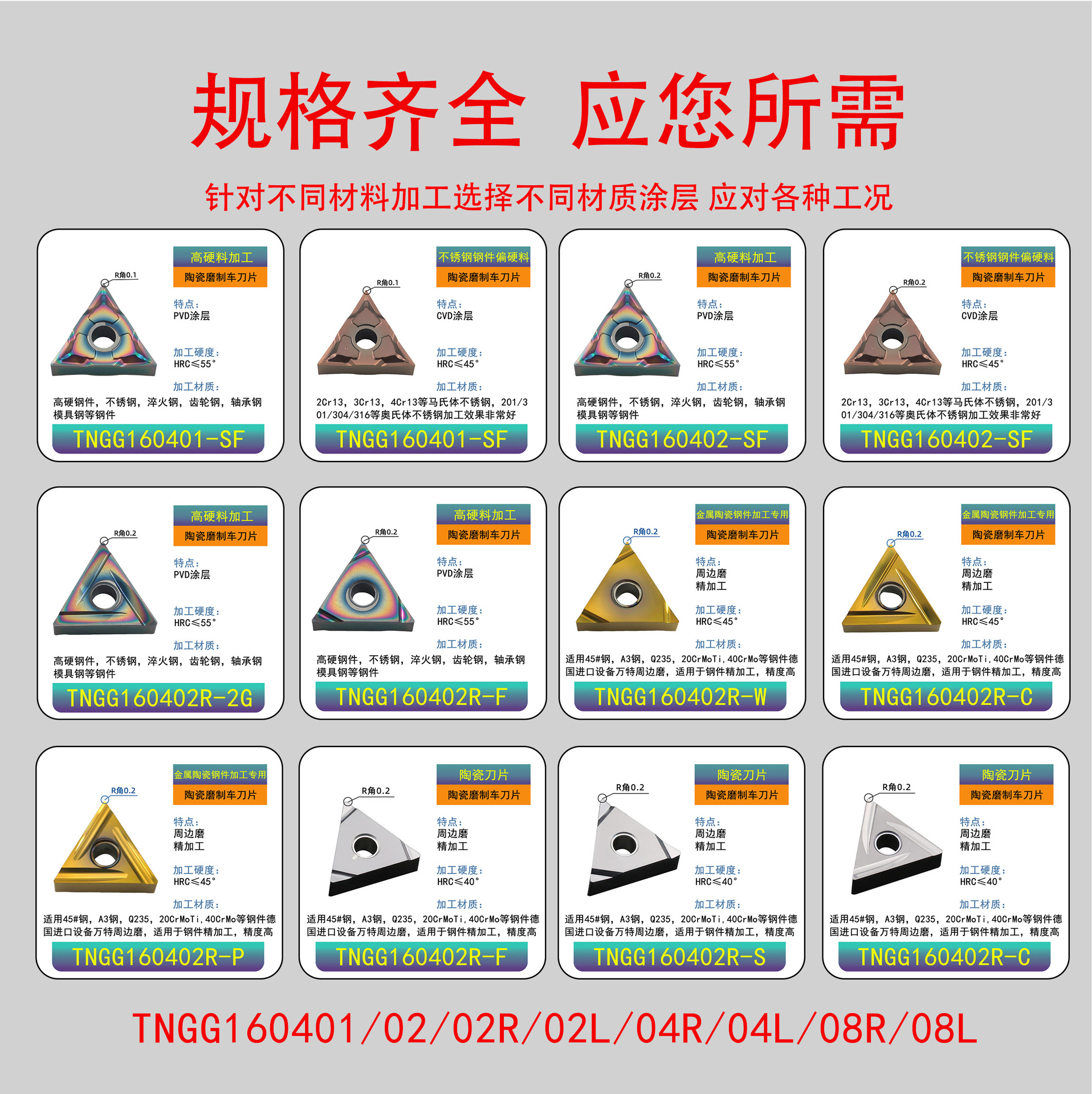 TNGG160401-SF 55-градусный материал высокой твердости для обработки DU6150; TNGG160401-SF Детали из нержавеющей стали/стали, твердый материал DM6140; TNGG160402-SF 55-градусный материал высокой твердости для обработки DU6150; TNGG160402-SF нержавеющая сталь/стальные детали, твердый материал DM6140; TNGG160402R-F 55-градусный материал высокой твердости для обработки DU6150; TNGG160402R-F керамическое лезвие DG5630; TNGG160402R-C Специальная обработка для деталей из керметной стали, 10 штук/упаковка, DG5530; TNGG160402R-C керамическое лезвие DG5630; TNGG160402R-2G 55-градусный материал высокой твердости для обработки DU6150; TNGG160402R-W Специальная обработка для деталей из керметной стали, 10 шт./упаковка, DG5530; TNGG160402R-P Специальная обработка для деталей из кераметной стали, 10 шт./упаковка, DG5530; TNGG160402R-S керамическое лезвие DG5630; TNGG160402L-F 55-градусный материал для обработки с высокой твердостью DU6150; TNGG160402L-F керамическое лезвие DG5630; TNGG160402L-C Специальная обработка для деталей из керметной стали, 10 штук/упаковка, DG5530; TNGG160402L-C керамическое лезвие DG5630; TNGG160402L-2G 55-градусный материал высокой твердости для обработки DU6150; TNGG160402L-W Специальная обработка для деталей из керметной стали, 10 штук/упаковка, DG5530; TNGG160402L-P Специальная обработка для деталей из керметной стали, 10 шт./упаковка, DG5530; TNGG160402L-S керамическое лезвие DG5630; TNGG160404R-F 55-градусный материал высокой твердости для обработки DU6150; TNGG160404R-F керамическое лезвие DG5630; TNGG160404R-C Специальная обработка для деталей из керметной стали, 10 штук/упаковка, DG5530; TNGG160404R-C керамическое лезвие DG5630; TNGG160404R-2G 55-градусный материал высокой твердости для обработки DU6150; TNGG160404R-W Специальная обработка для деталей из керметной стали, 10 штук/упаковка, DG5530; TNGG160404R-P Специальная обработка для деталей из керметной стали, 10 штук/упаковка, DG5530; TNGG160404R-S керамическое лезвие DG5630; TNGG160404L-F 55-градусный материал высокой твердости для обработки DU6150; TNGG160404L-F керамическое лезвие DG5630; TNGG160404L-C Специальная обработка для деталей из керметной стали, 10 штук/упаковка, DG5530; TNGG160404L-C керамическое лезвие DG5630; TNGG160404L-2G 55-градусный материал высокой твердости для обработки DU6150; TNGG160404L-W Специальная обработка для деталей из керметной стали, 10 штук/упаковка, DG5530; TNGG160404L-P Специальная обработка для деталей из керметной стали, 10 штук/упаковка, DG5530; TNGG160404L-S керамическое лезвие DG5630; TNGG160408R-F керамическое лезвие DG5630; TNGG160408R-C керамическое лезвие DG5630; TNGG160408R-S керамическое лезвие DG5630; TNGG160408L-F керамическое лезвие DG5630; TNGG160408L-C керамическое лезвие DG5630; TNGG160408L-S керамическое лезвие DG5630