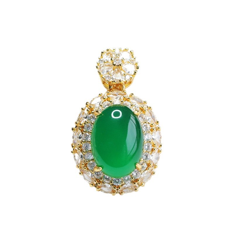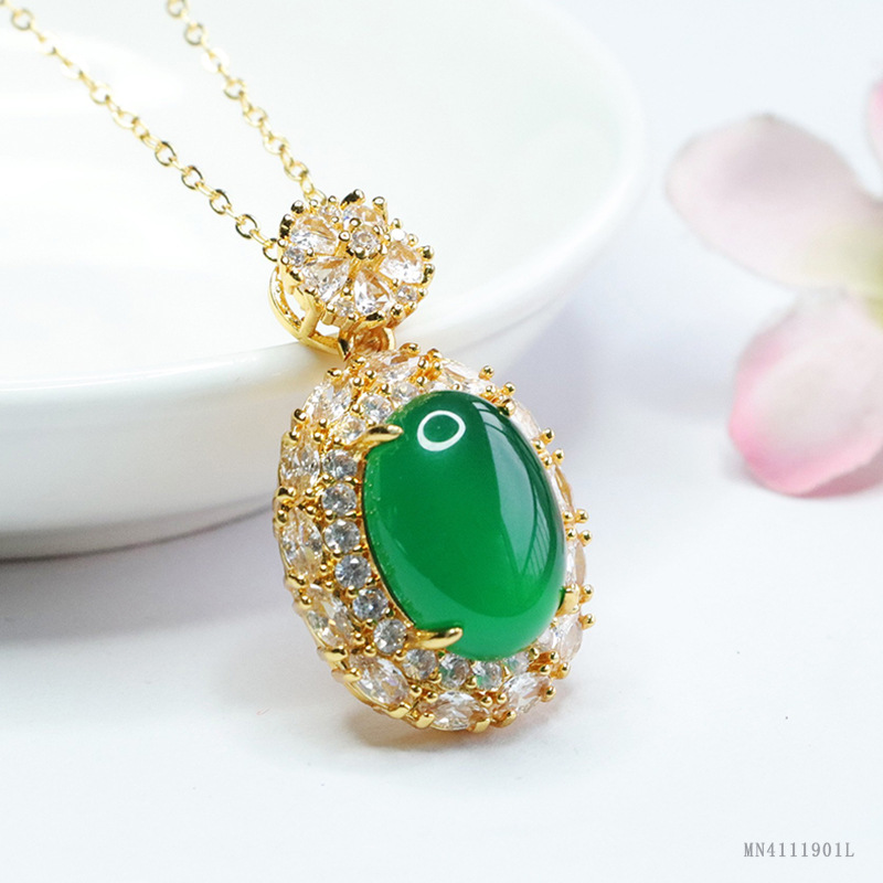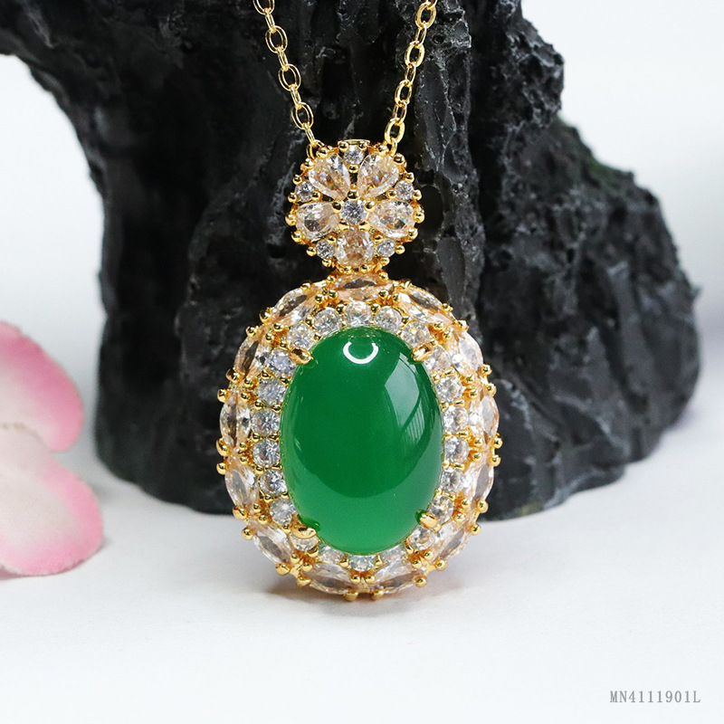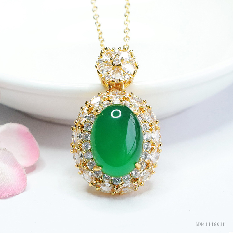 Yiyu натуральный агат кулон ледяной императорский зеленый халцедон ожерелье женские ювелирные изделия оптом MN4111901L