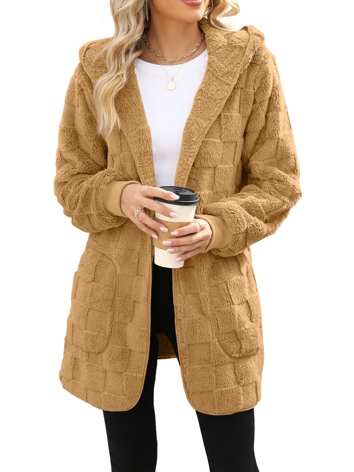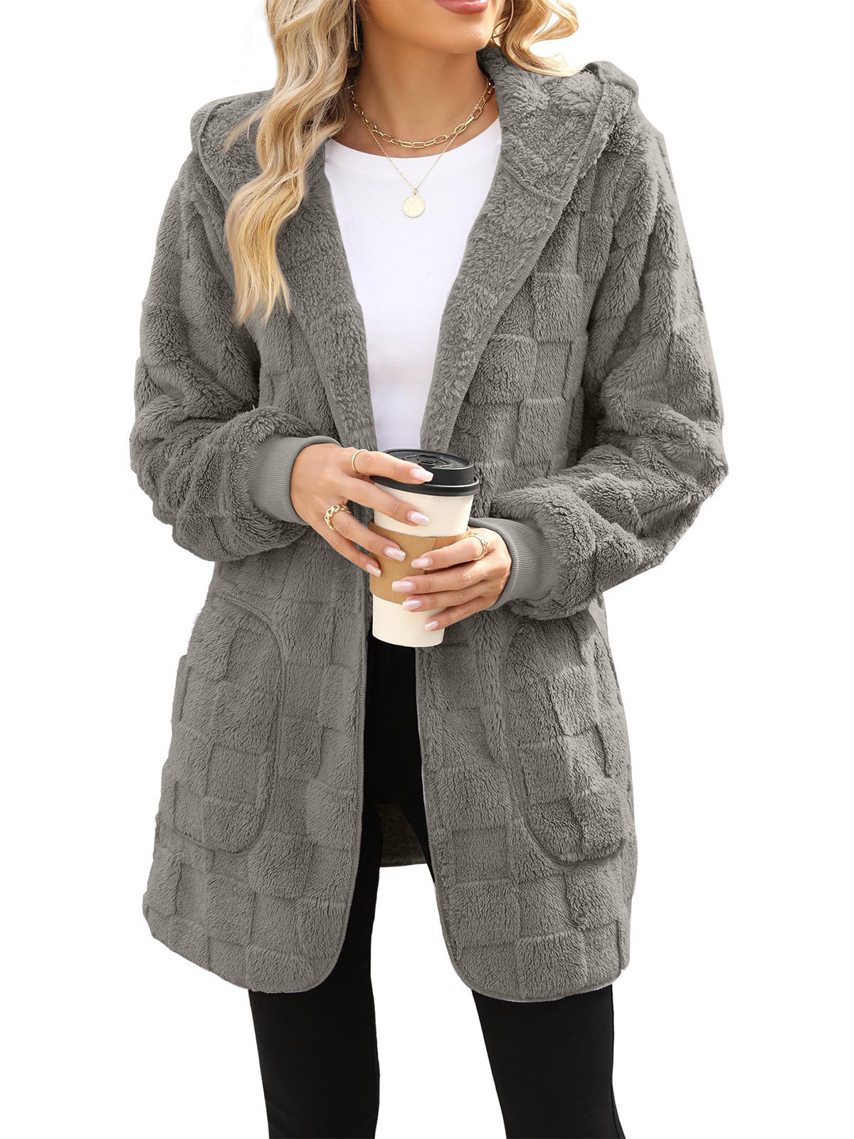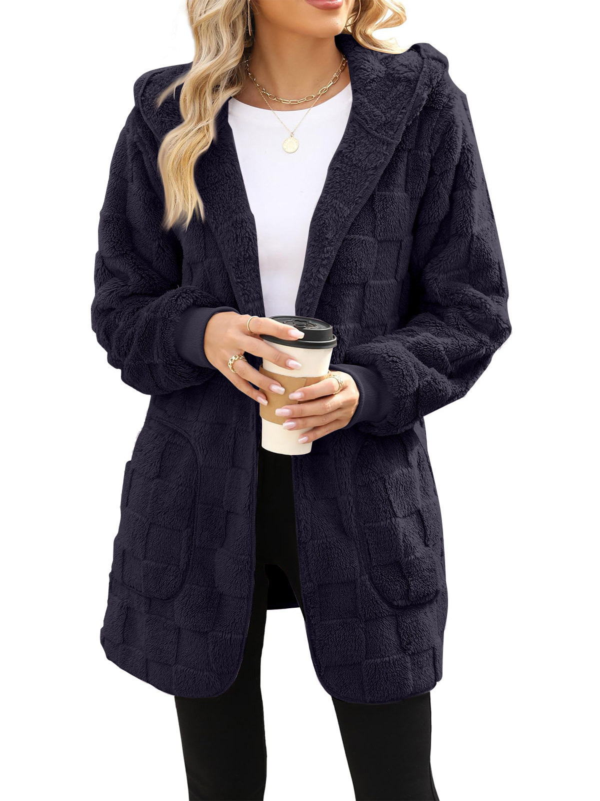 Плюшевая домашняя одежда Европа и амазонка трансграничная женская осень и зима клетка плюшевый кардиган шерстяная повседневная куртка женский