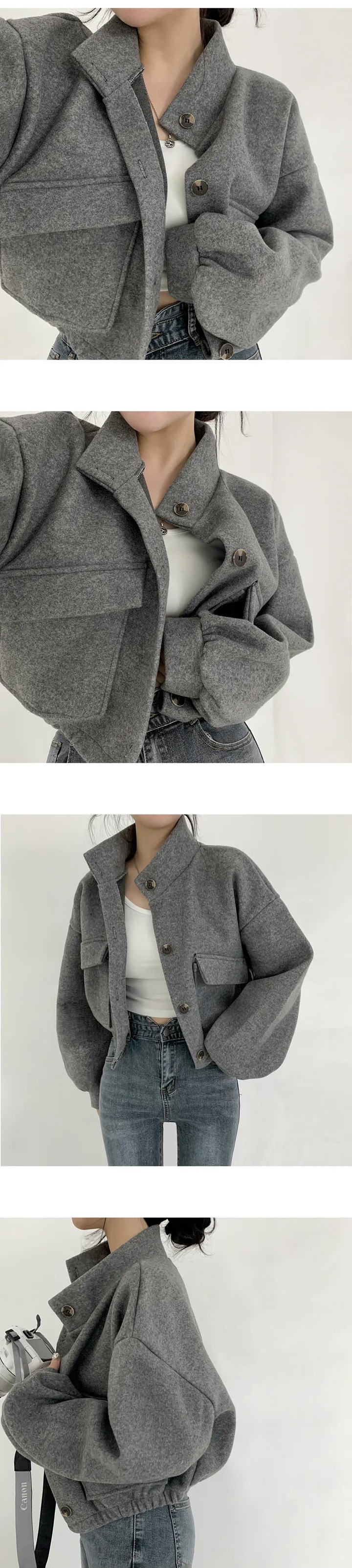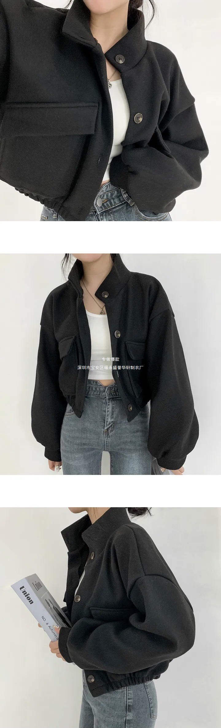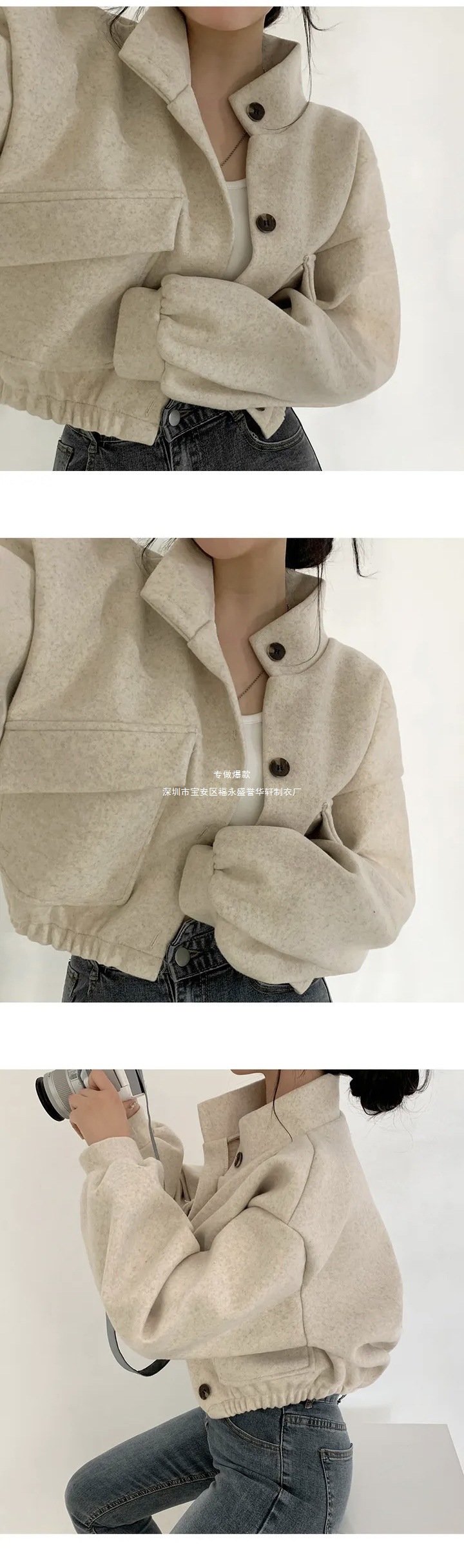 Nethong крутой красивый корейский осенний и зимний новый воротник нишевые короткие ленивые свободные повседневные шерстяные шерстяные куртки женские