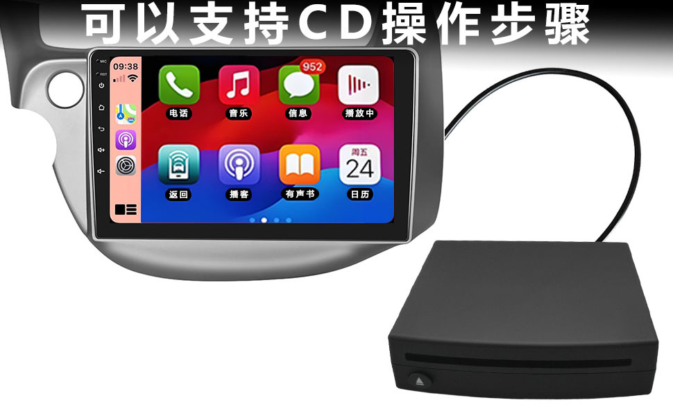 1.1将CD播放器连接到车载主机上的USB信号端口(不要连接充电端口),然后放入CD光盘,大约12秒读取成功;