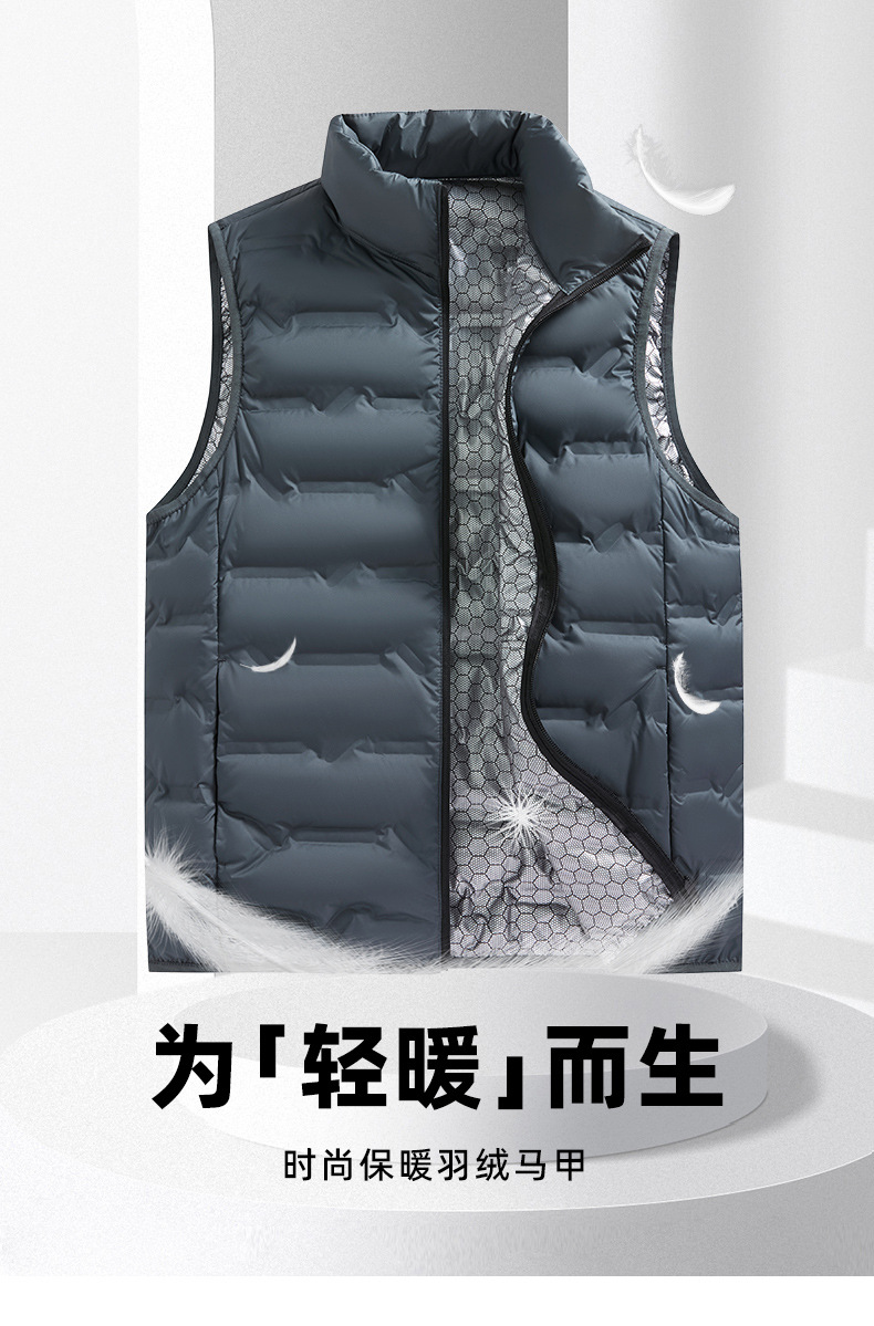 2024 осень и зима новый графен теплый воротник белый утка бархат мода трансграничный тренд воротник пуховый жилет мужчина