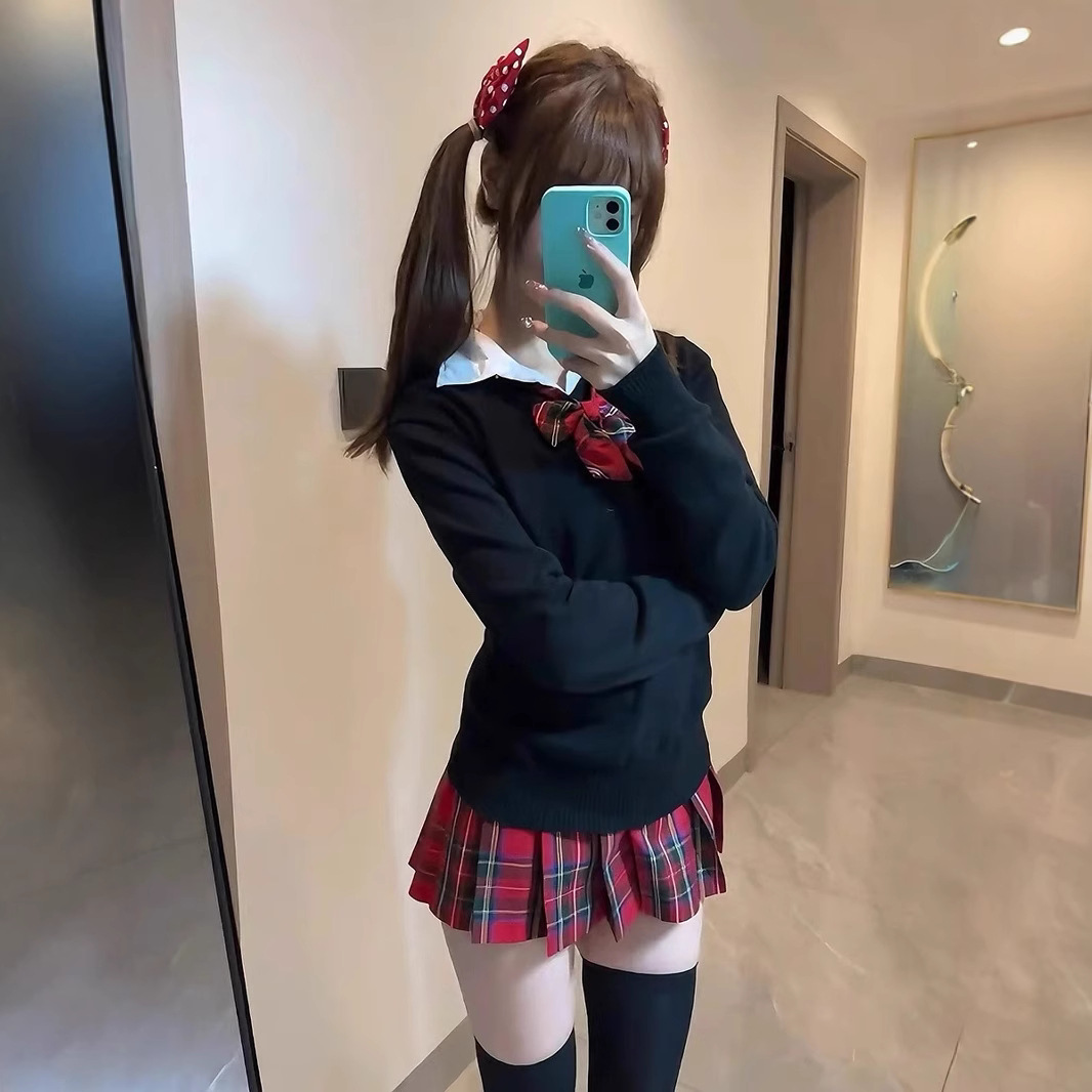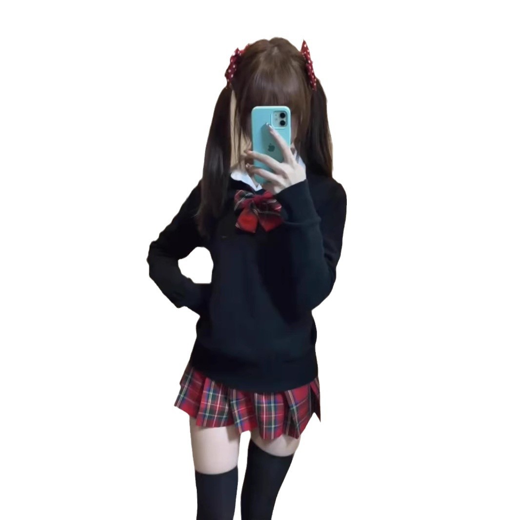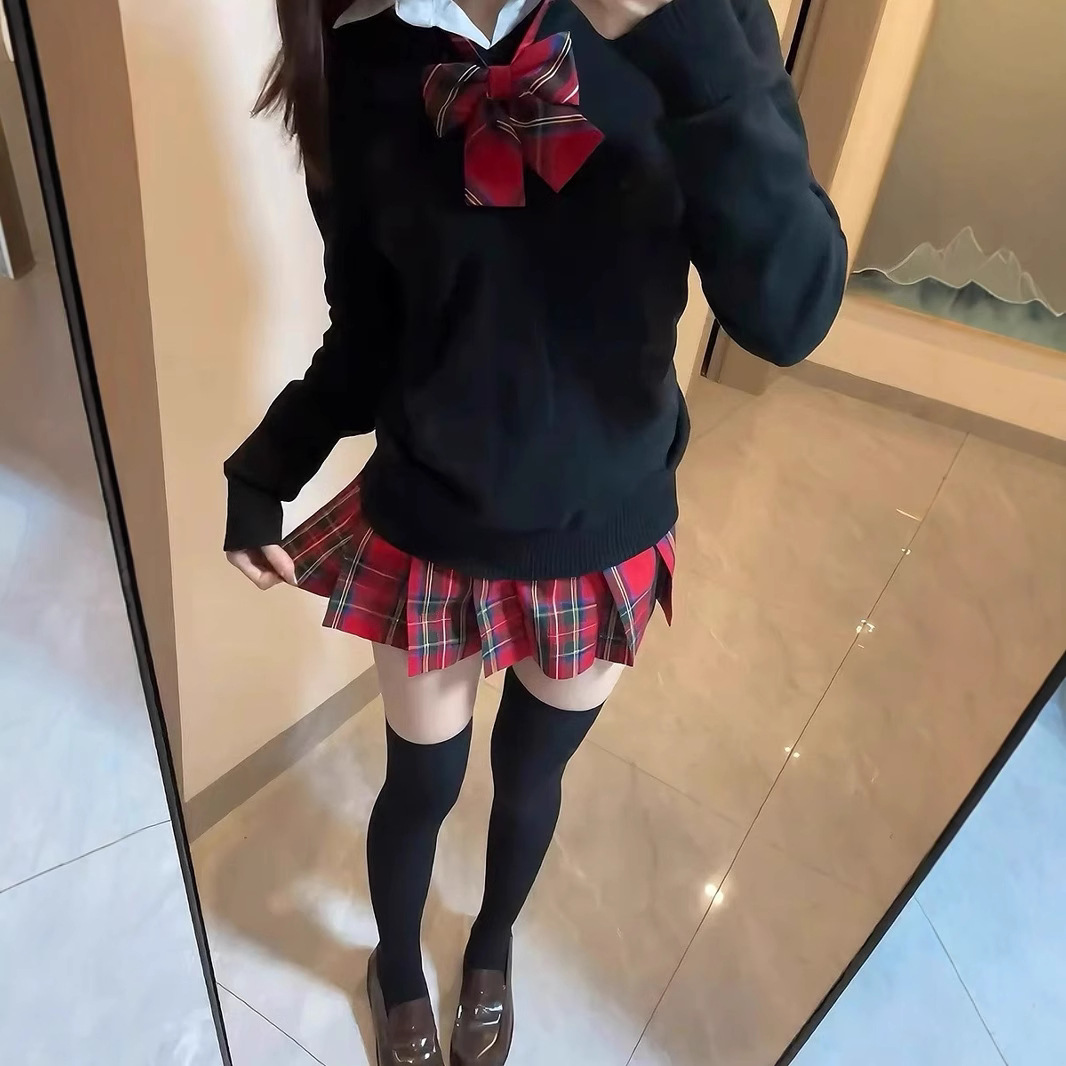 Little Chili JK Униформа набор осень-зима Оригинальная японская рождественская красная сетка юбка школьная подкладка плиссированная юбка женская юбка