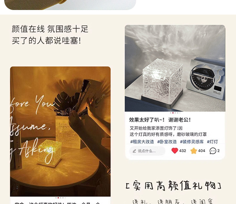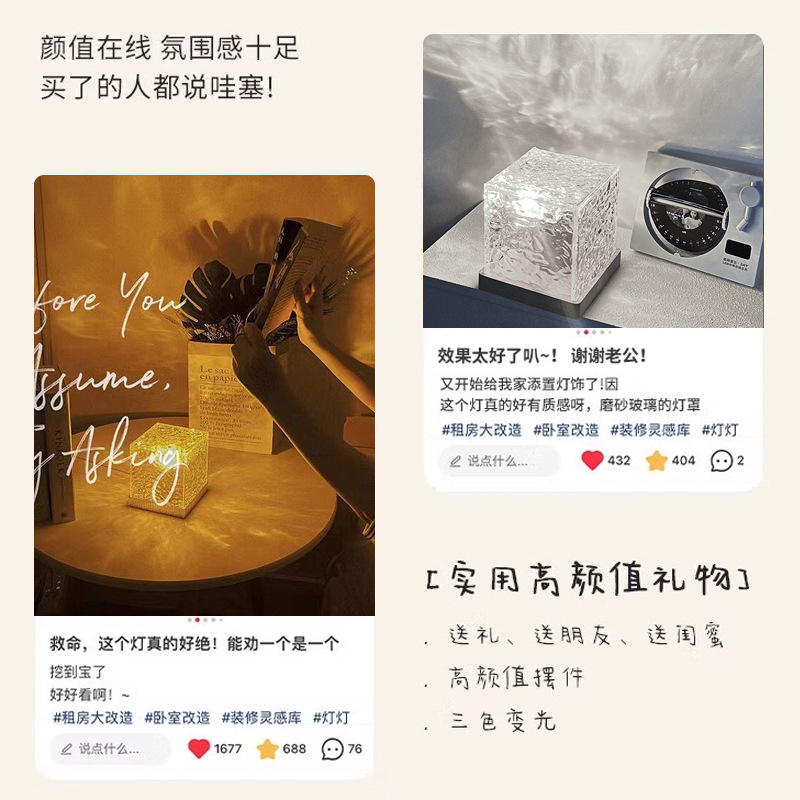 Квадратная водная рябь светильника ночной свет креативный подарок для девочек