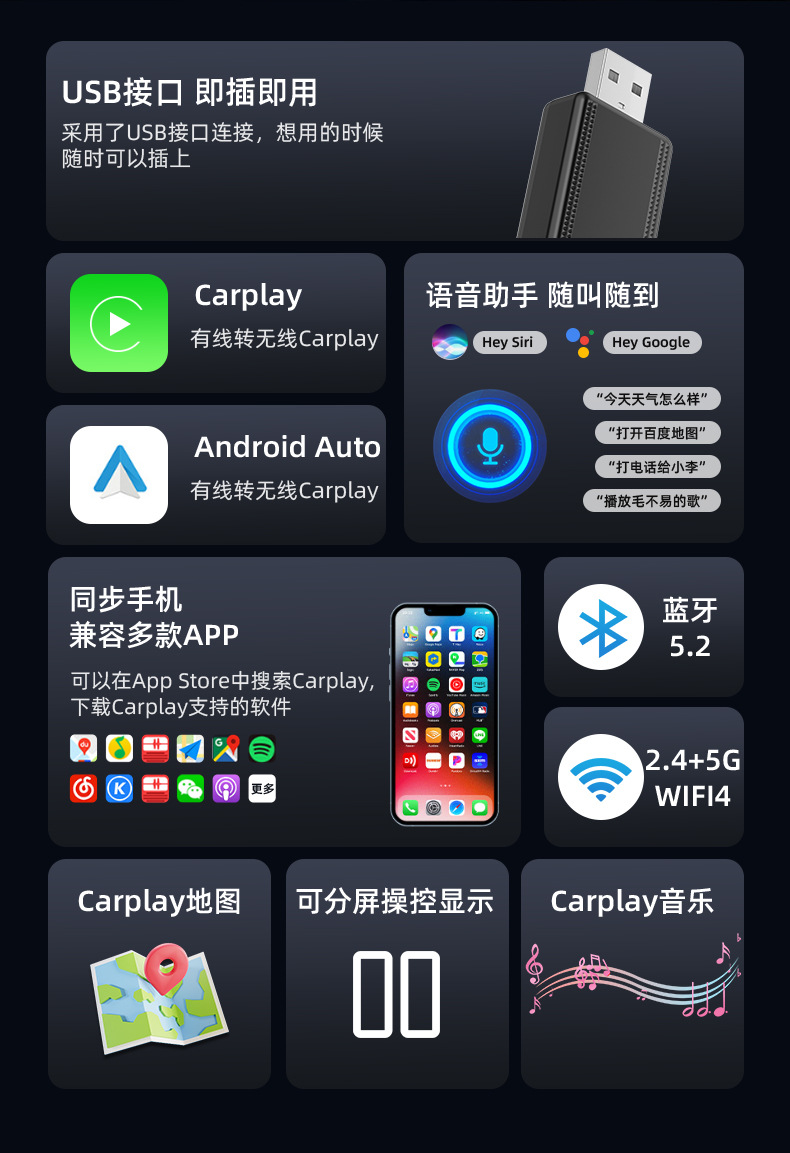 Трансграничный carplay Apple Android 2-в-1 проводной в беспроводной автомобильный интеллектуальный навигационный карплей коробка