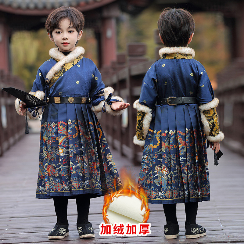 Костюм для мальчиков Hanfu Flying Fish Костюм 2024 Новый детский осенний и зимний костюм для мальчиков