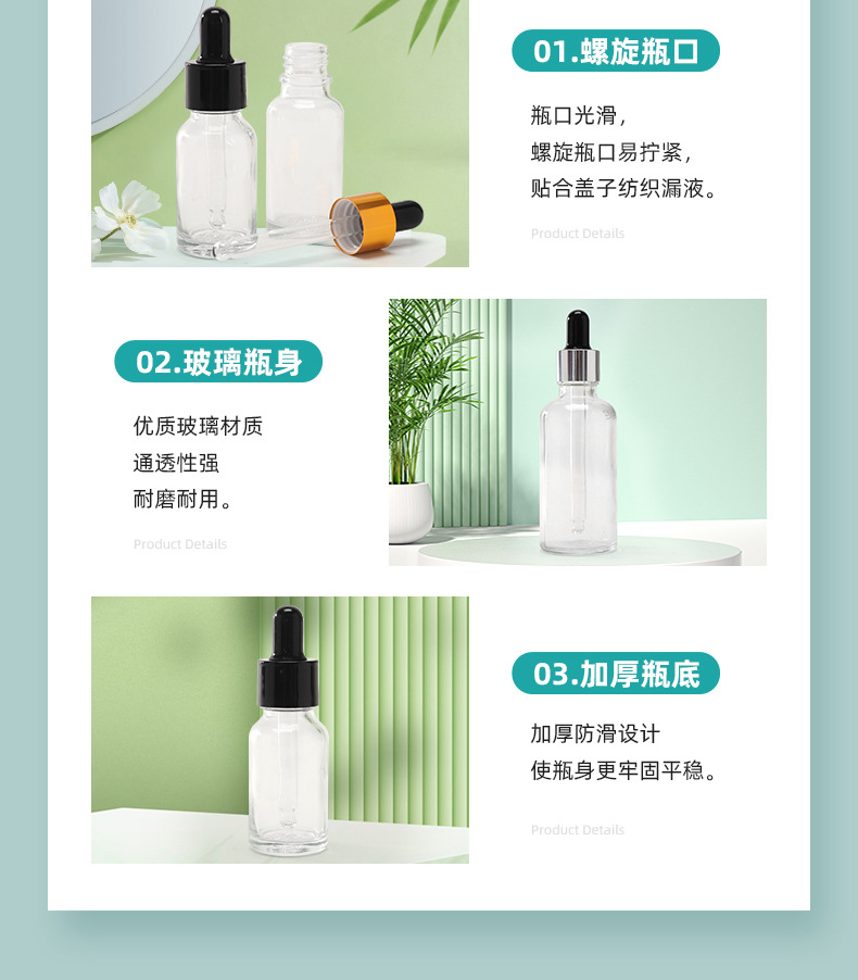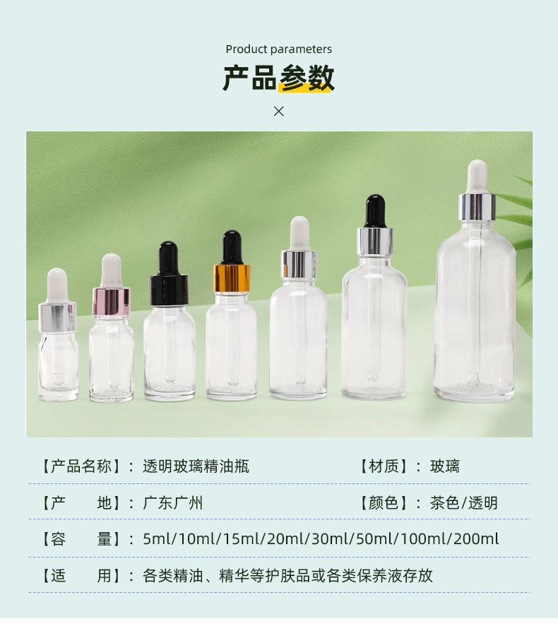 Прозрачная бутылка эфирного масла, 20 мл, стеклянная бутылка-капельница, 30 мл, бутылка-капельница, 5 мл, бутылка с капельницей для образца, фабрика