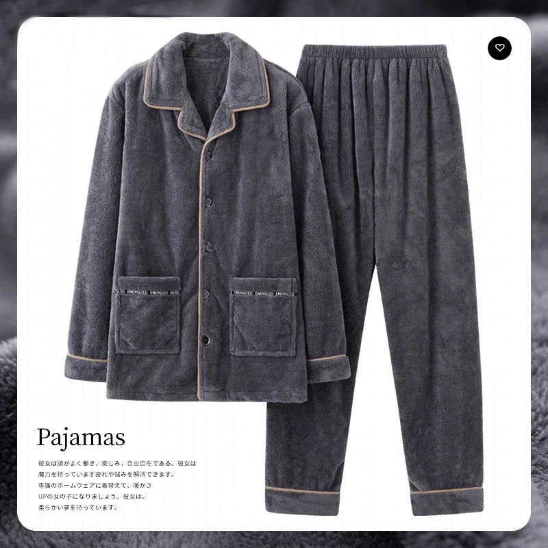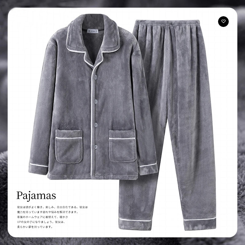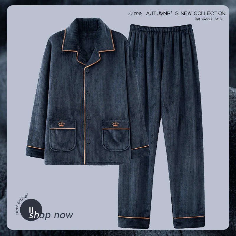 Новый осенне-зимний комплект мужской пижамы из фланели с вышивкой, однотонный, простой, повседневный, можно носить как домашнюю одежду, также подходит для выхода на улицу.