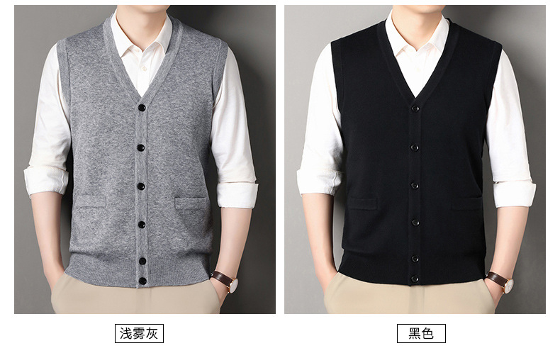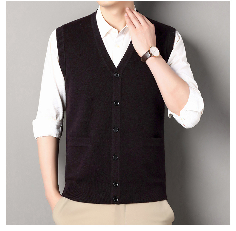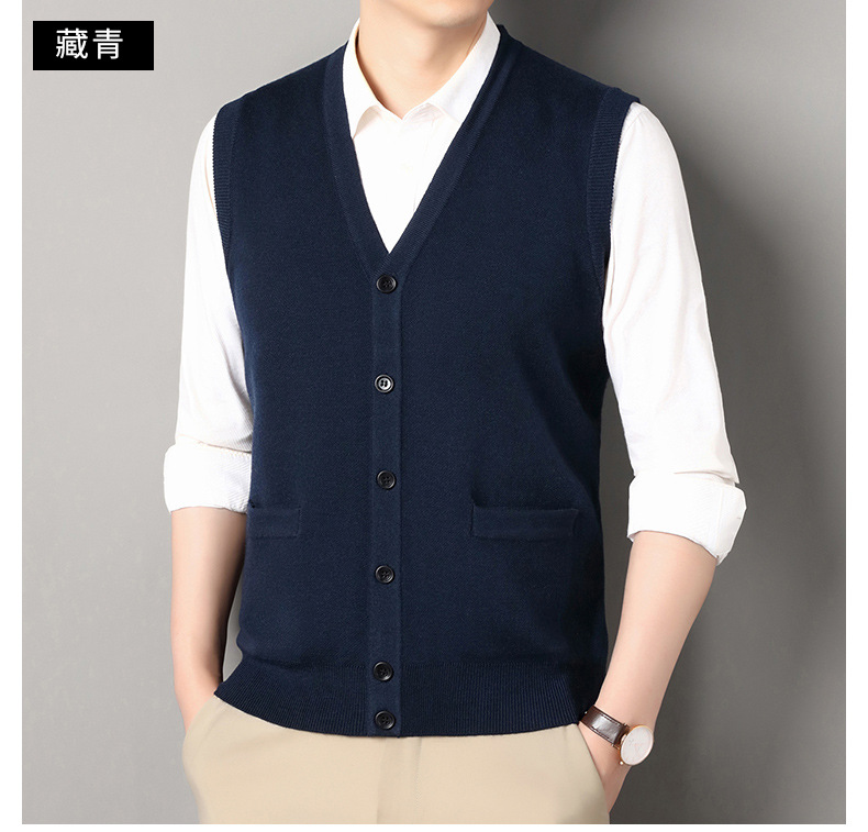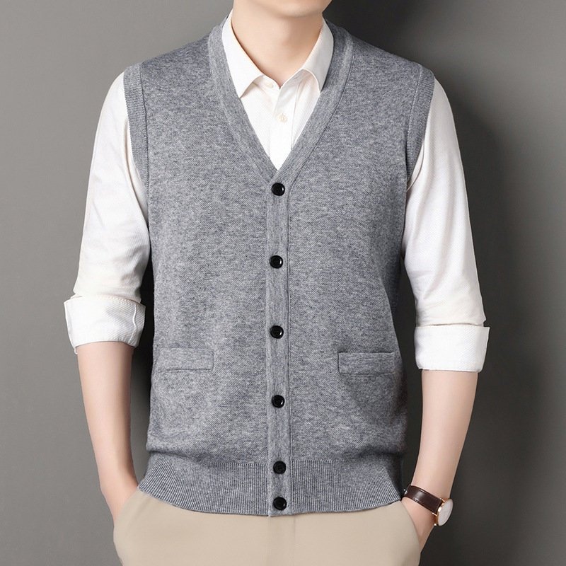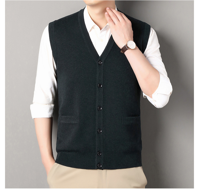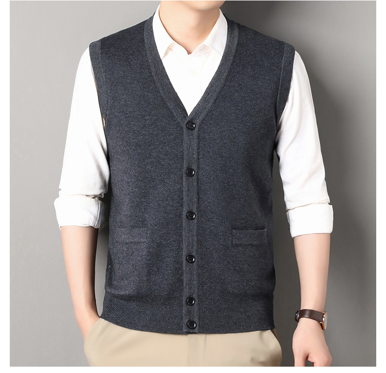 Осенний и зимний новый шерстяной смешанный жилет для мужчин среднего возраста толстый V-образный кардиган