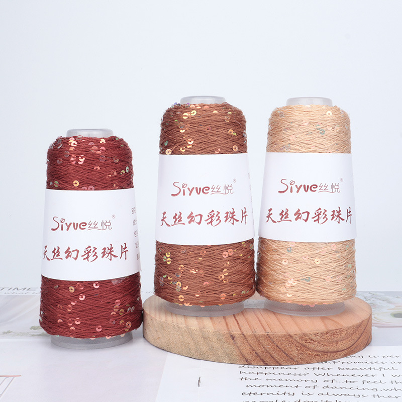 Шелковая пряжа Silk Joy/Тенсел с переливающимися пайетками, пряжа для ручного вязания, оптовая продажа модной разноцветной пряжи с пайетками из тенсела