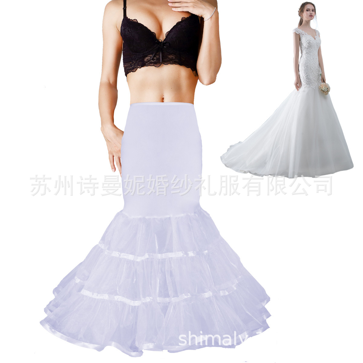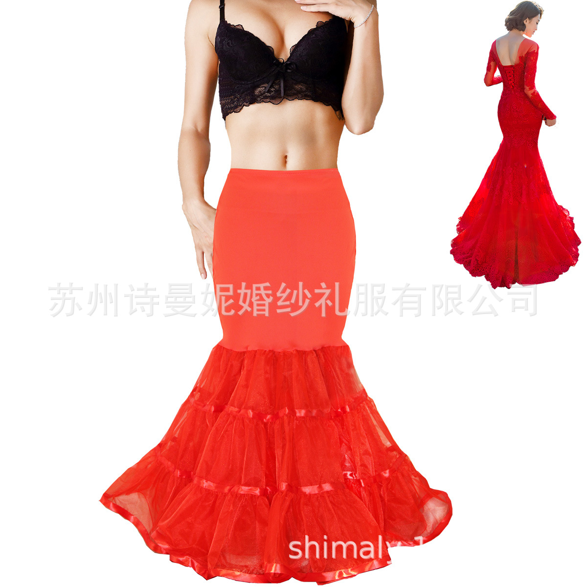 此款无骨撑裙,属于服装配套产品, 主要穿在各种鱼尾款婚纱礼服里面增加裙子的蓬度,塑造完美形态。 无骨撑裙相对于传统钢圈撑裙: 重量轻,舒适,易收纳 在欧美国家大受高端用户欢迎。 此产品主要用于出口,直供亚马逊,Ebay等各种电商平台卖家。 国内小姐妹如果购买, 请选择S-M均码,其它尺码都太大了,中国人穿不了。 |