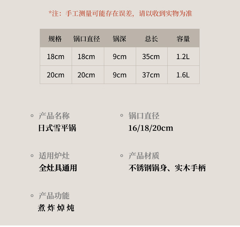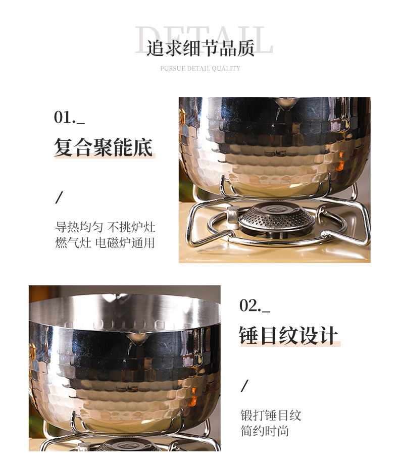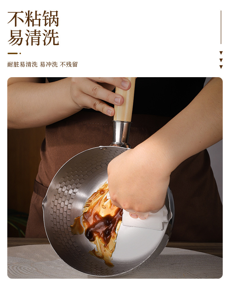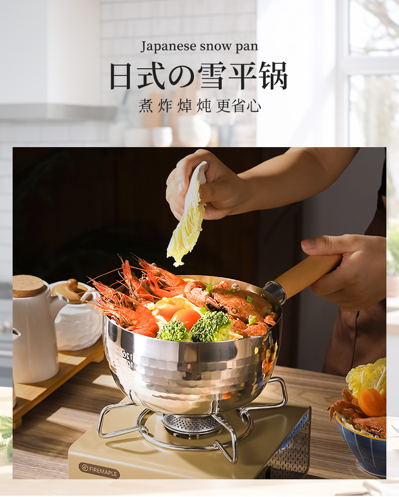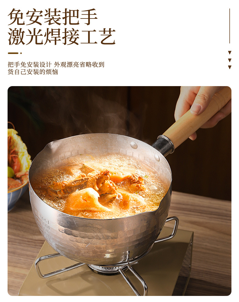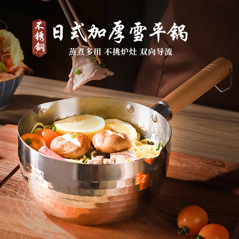 Снежный горшок из нержавеющей стали Японский деревянный ручка с плоским дном для домашнего приготовления