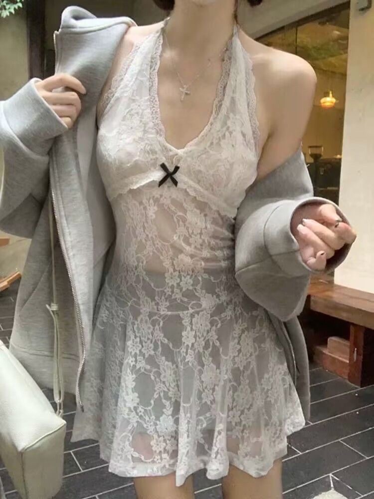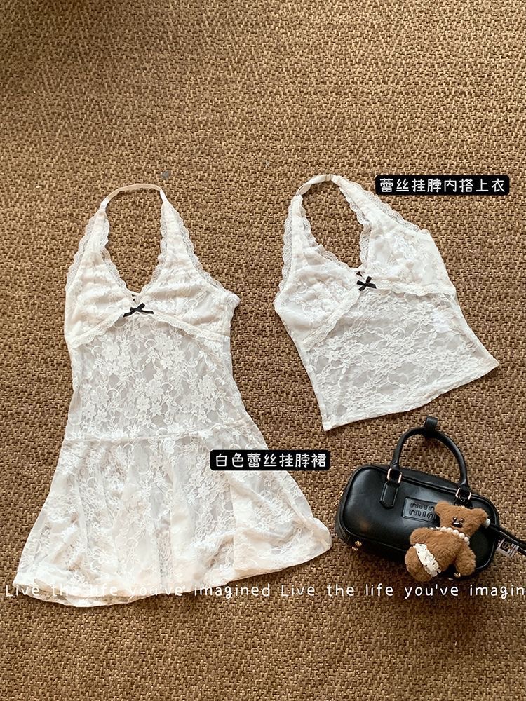 Белый чистый ветер сексуальная шея кружевное сшитое платье жилетка
