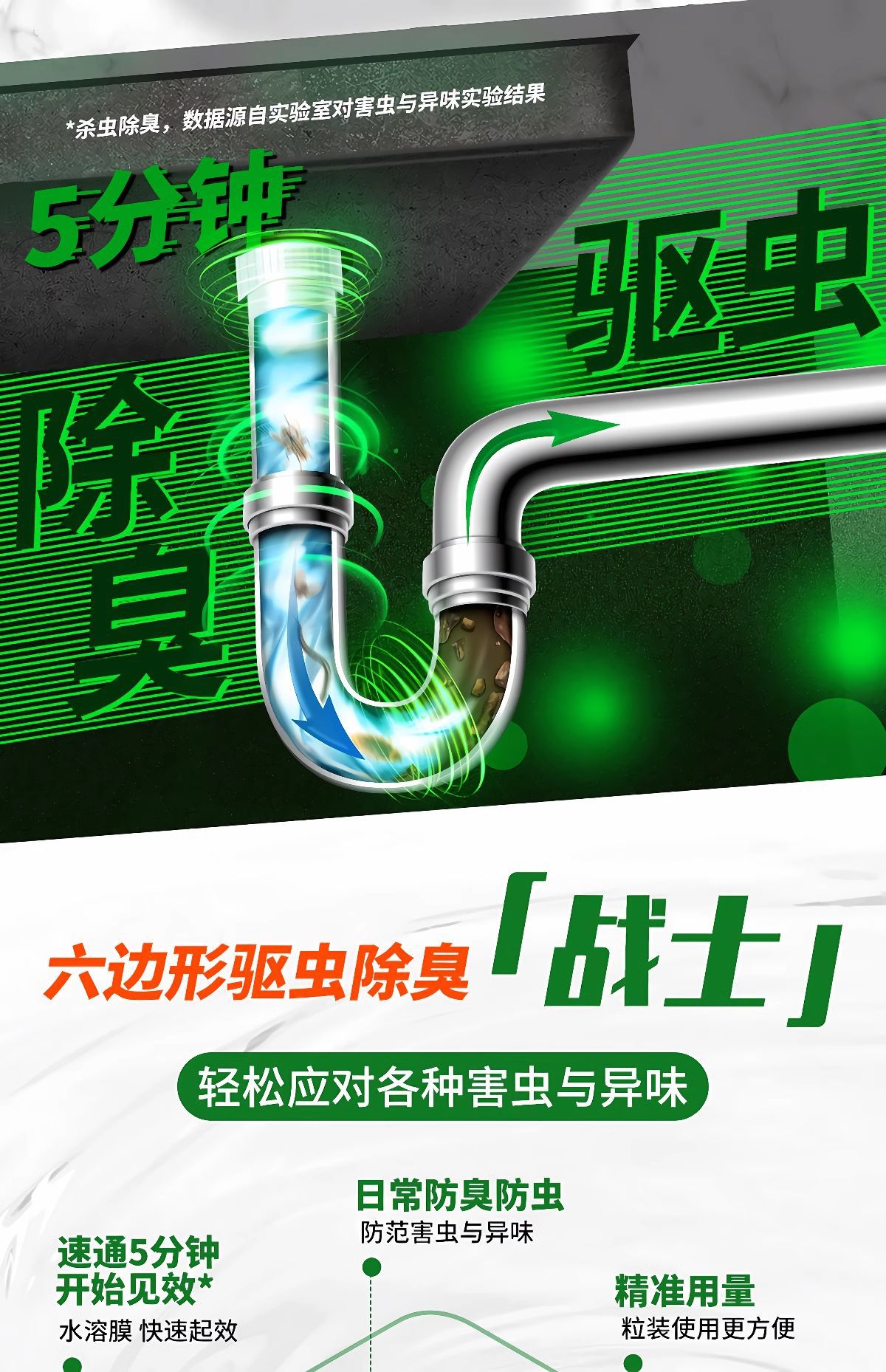 除臭凝珠卫生间厨房通用防返臭神器日常养护下水管口反味地漏除臭