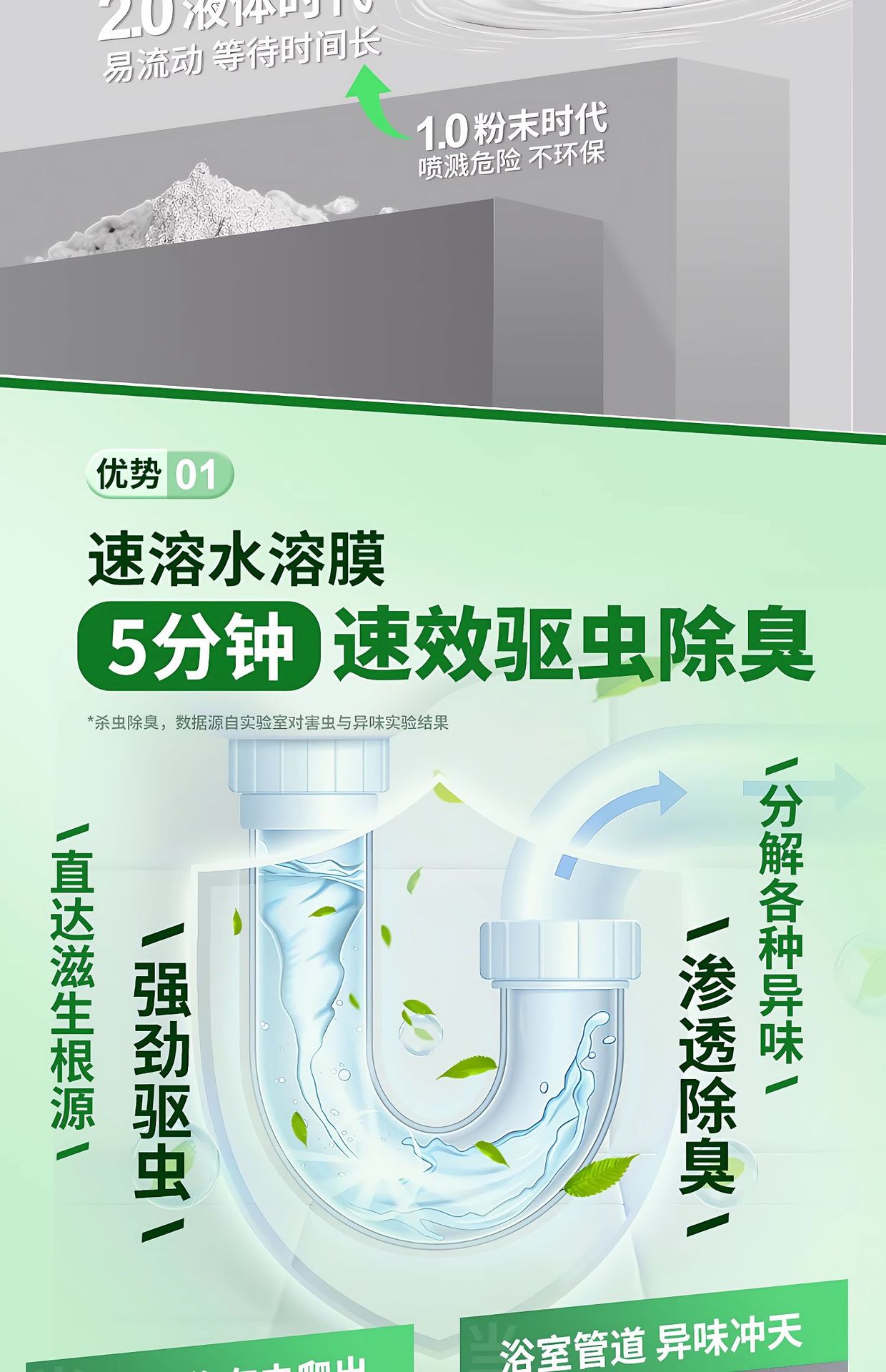 管道疏通剂厨房地漏排水管油污毛发溶解器水槽厕所除臭通下水道