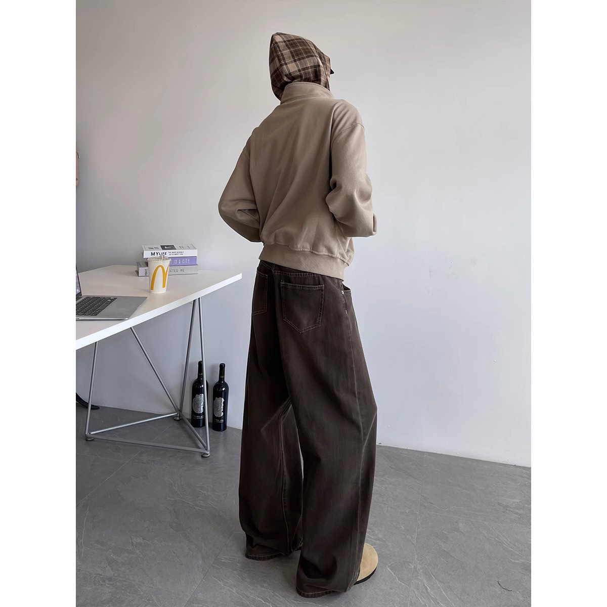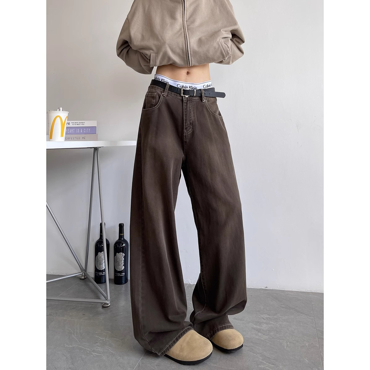 Американский цвет коричневые джинсы мужской осенний прилив cleanfit High Street дикие повседневные свободные широкие брюки