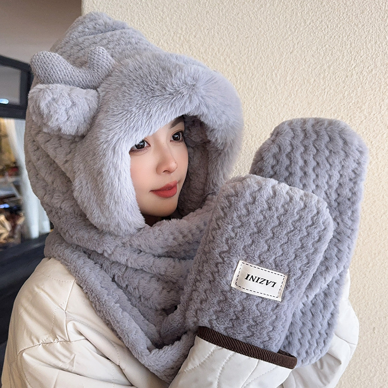 Рога шляпа дети осенний и зимний шарф перчатки один один зимой милый медведь плюшевый теплый с капюшоном нагрудник из трех частей