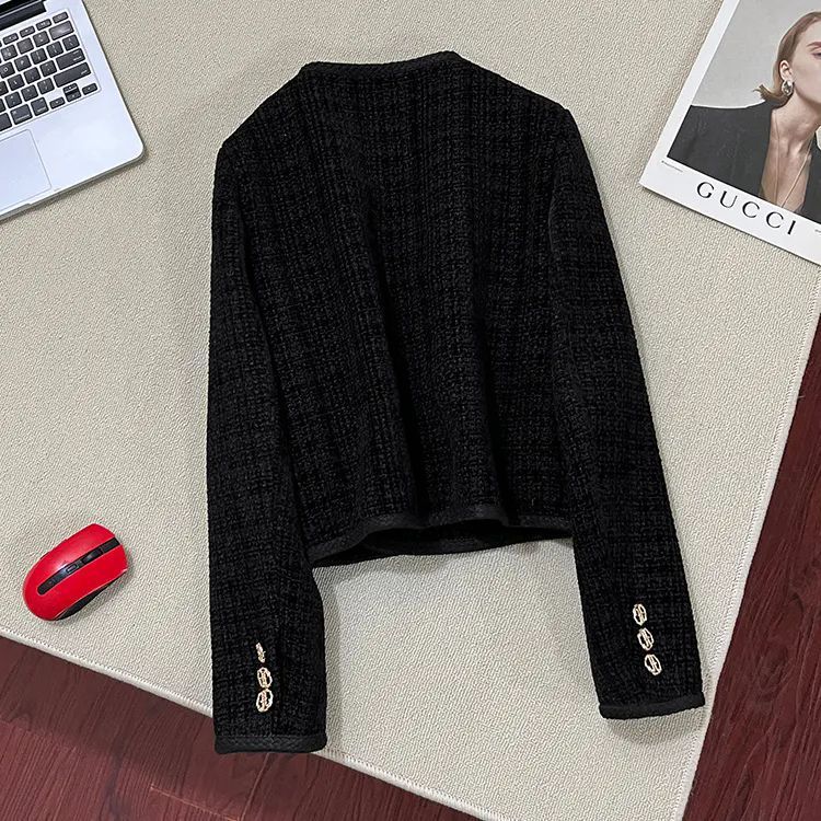 Плюшевый толстый черный круглый воротник ароматный короткий пиджак осень-зима новый толстый твидс темперамент короткий топ