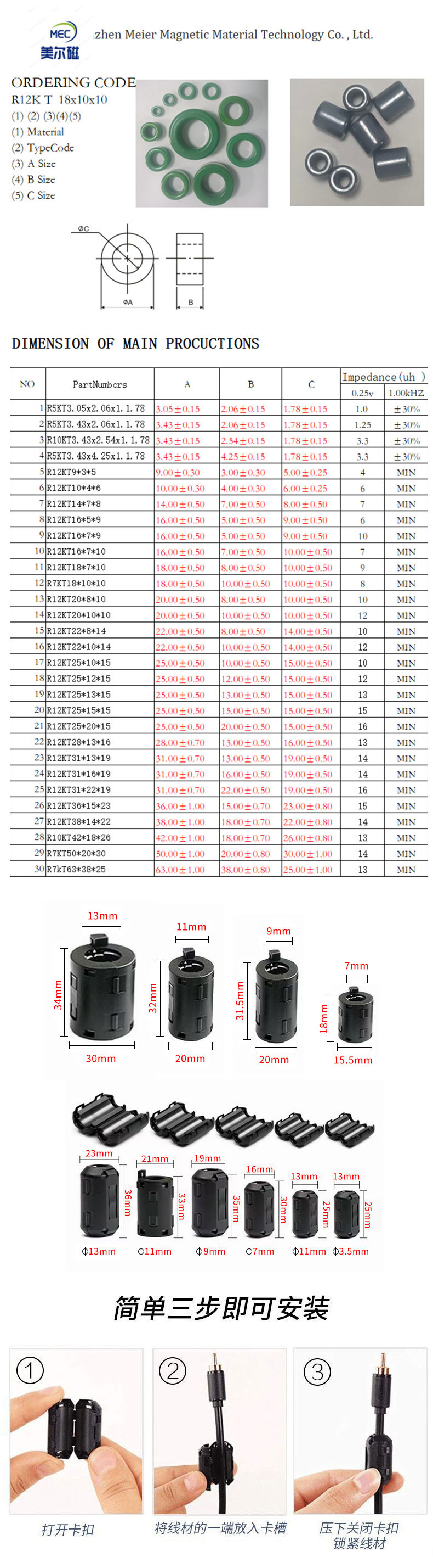 Магнитное кольцо LH16RH16*17*9 из никель-цинкового феррита, антиинтерференционное, фильтрующее, для жгутов проводов, высокопроизводительное