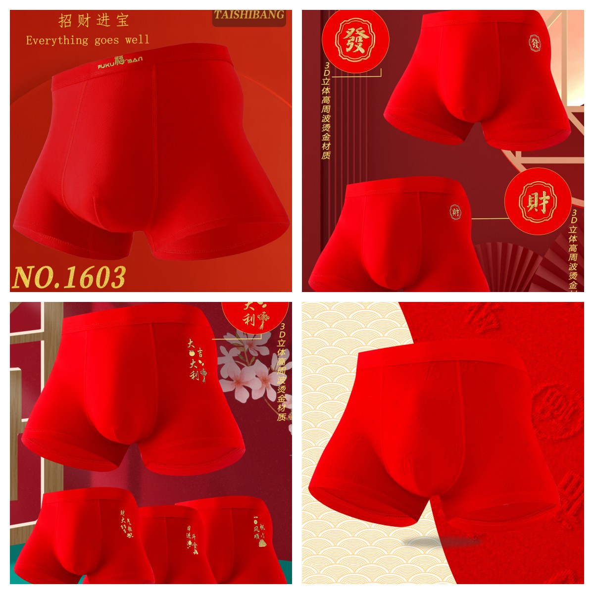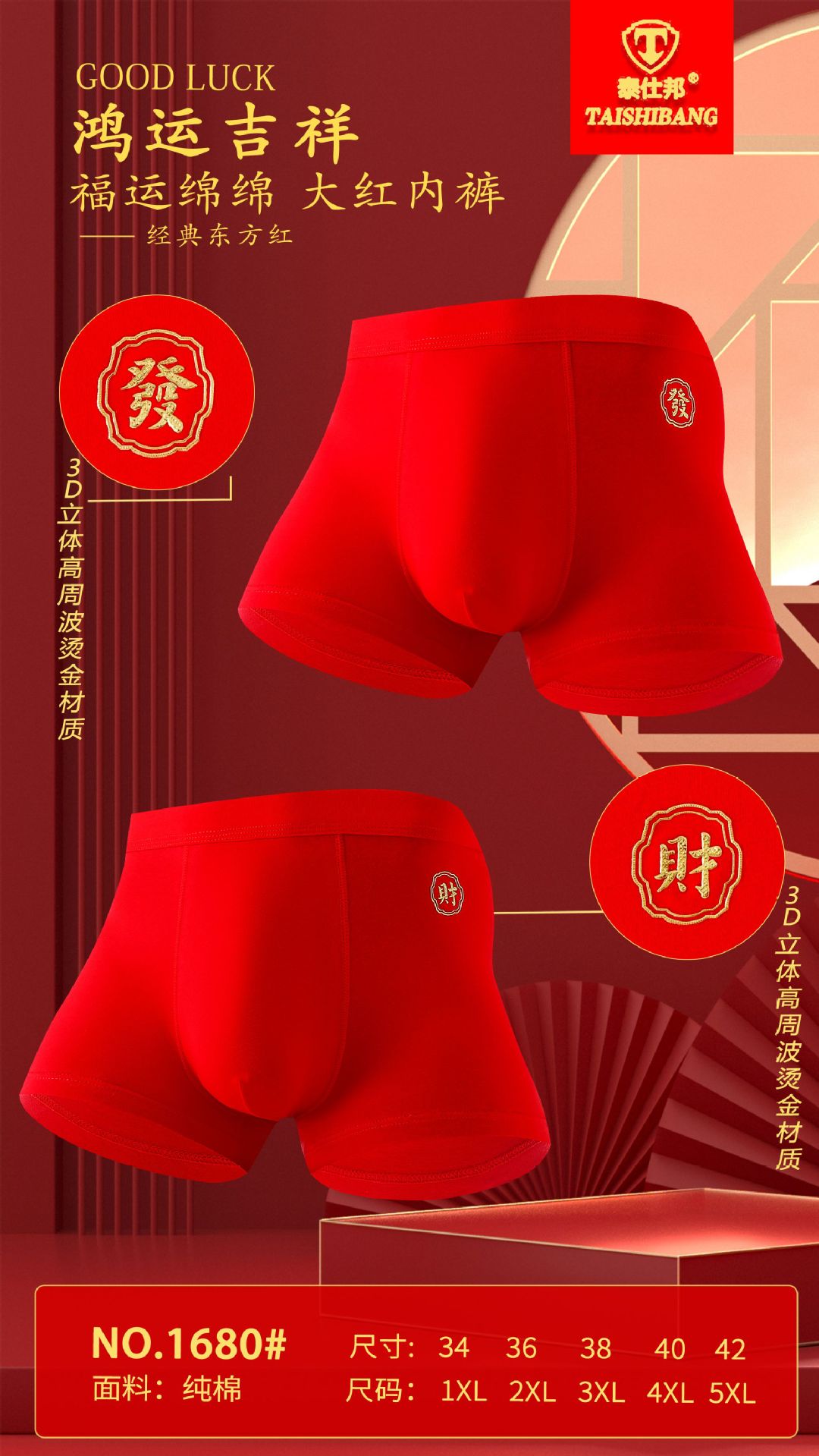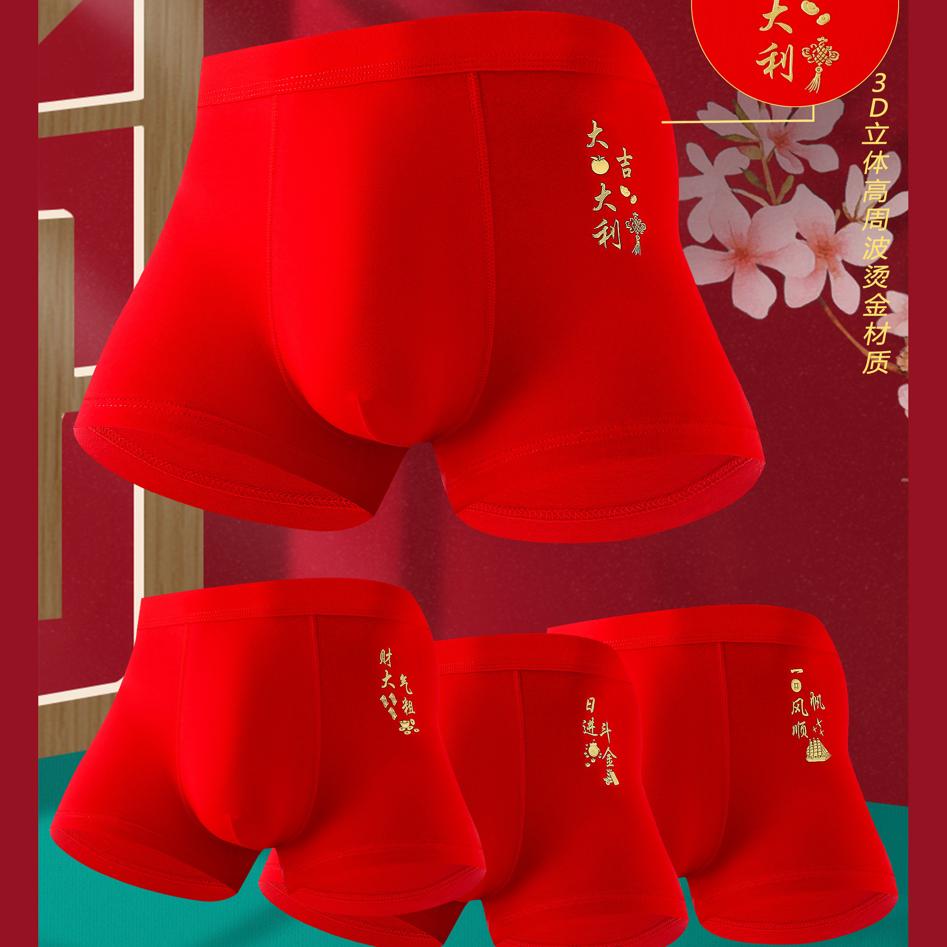 XL-7XL натальный год большой красный мужской плоский угол трусики из хлопка