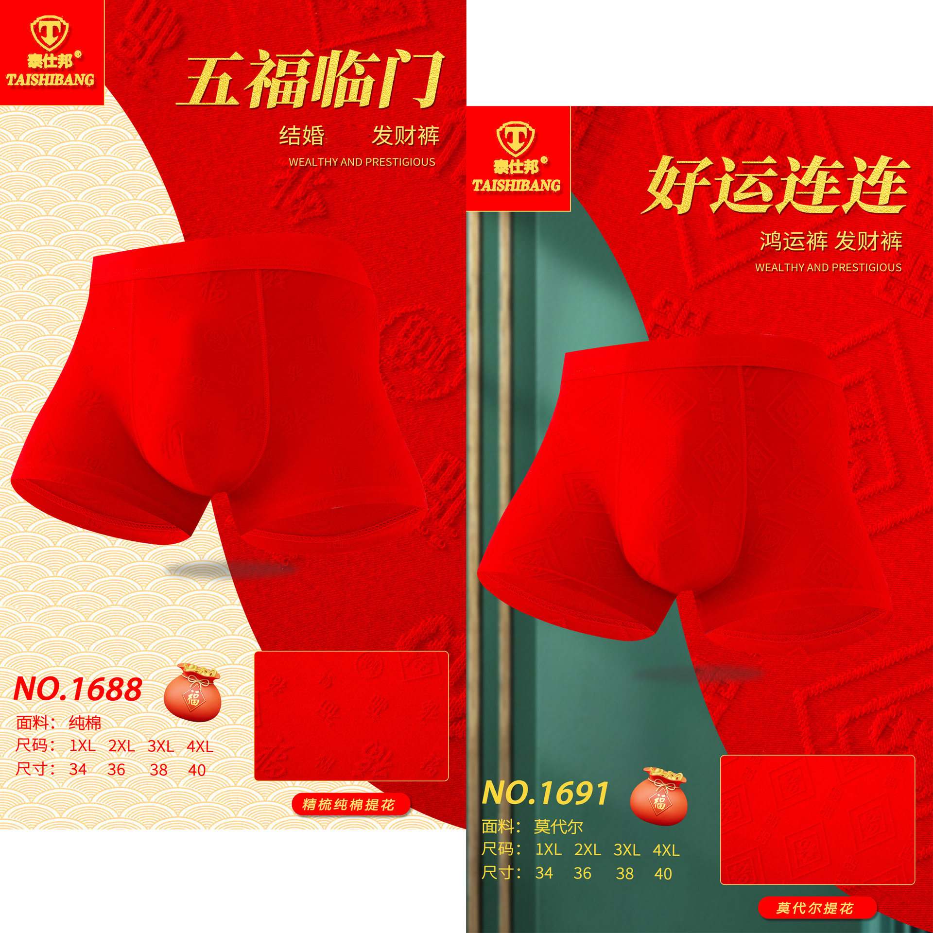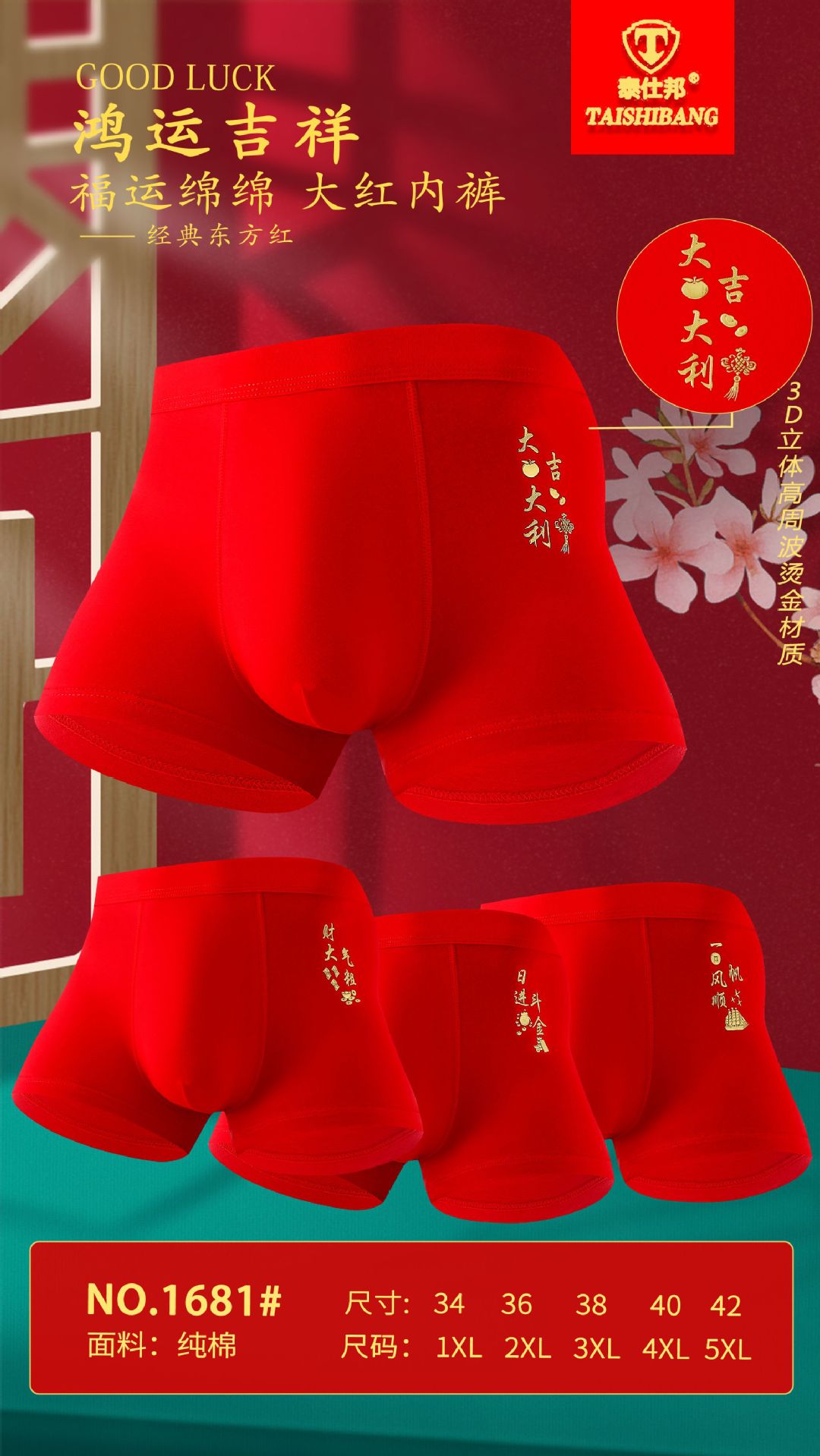 Taishibang 1617 сплошной цвет красный; Taishibang 1603 чистый хлопок с благословещими персонажами; Taishibang 1680 чистый хлопок удача [примечания по словам]; Taishibang 1681 чистый хлопок со словами [примечания по словам]; Taishibang 1686 Модальные большие красные брюки Fortune; Жаккард Taishibang 1688 из чистого хлопка; Модальный жаккард Taishibang 1691